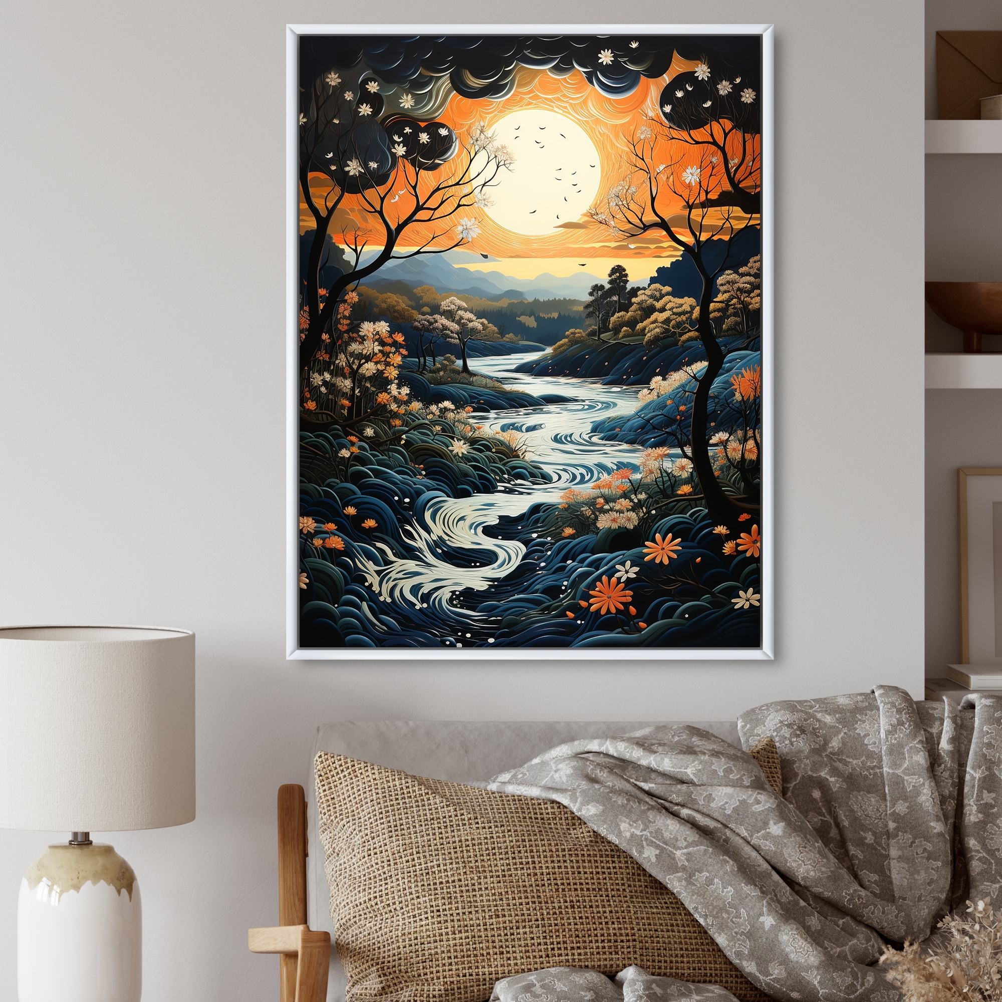 Designart "Orange River Silvery Waters II" Lakes & Rivers Framed Wall Decor