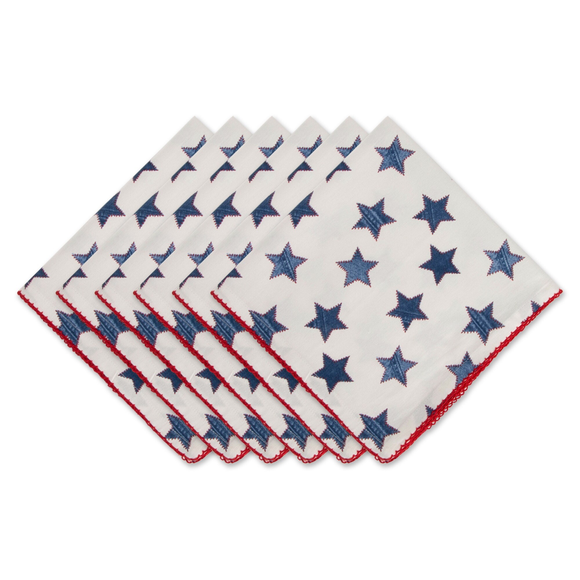 6 20"x20" Antique Blue White Stars With Embroidered Edge Napkins