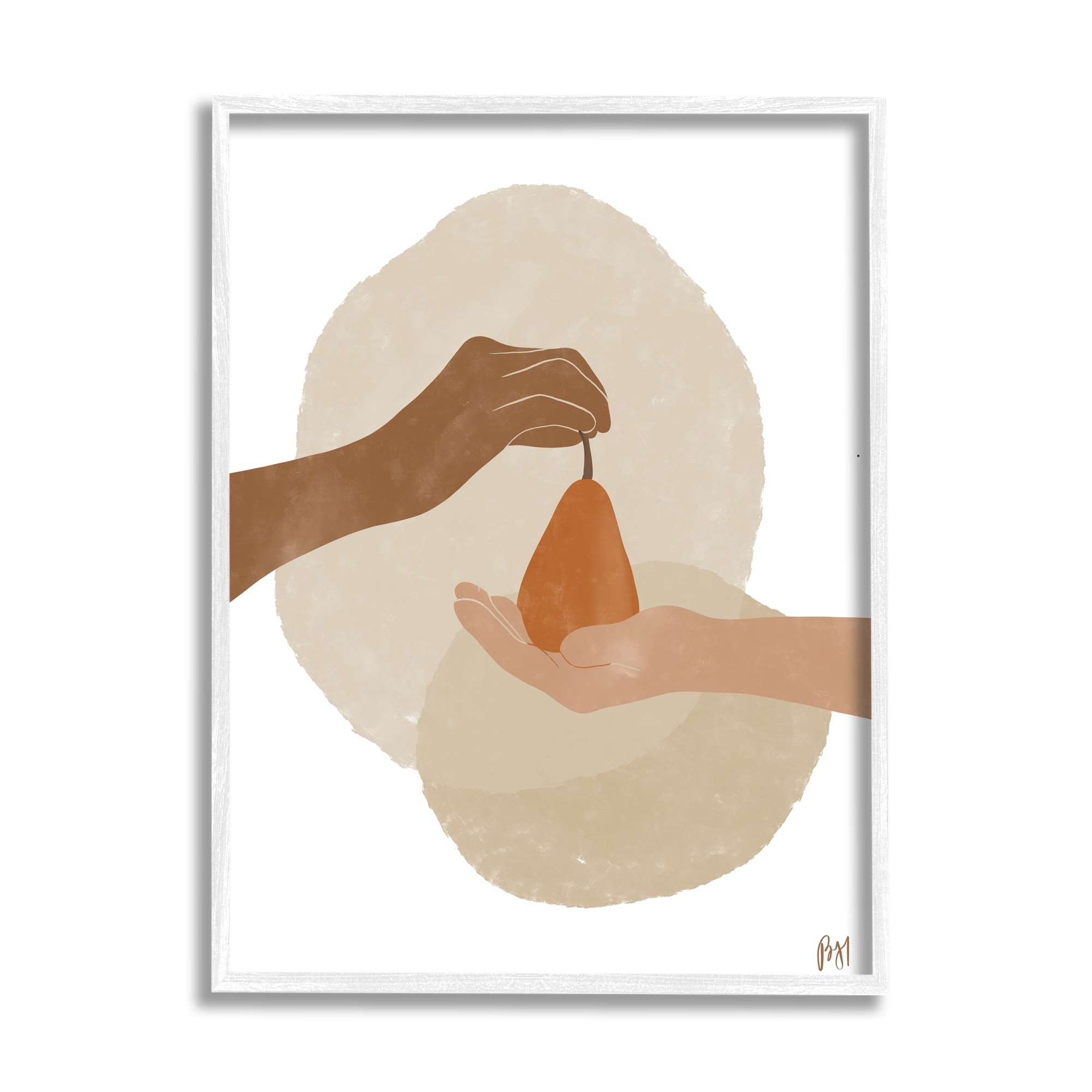 Stupell Industries Abstract Pear Offering Reaching Hands Earth Tones Framed Wall Art