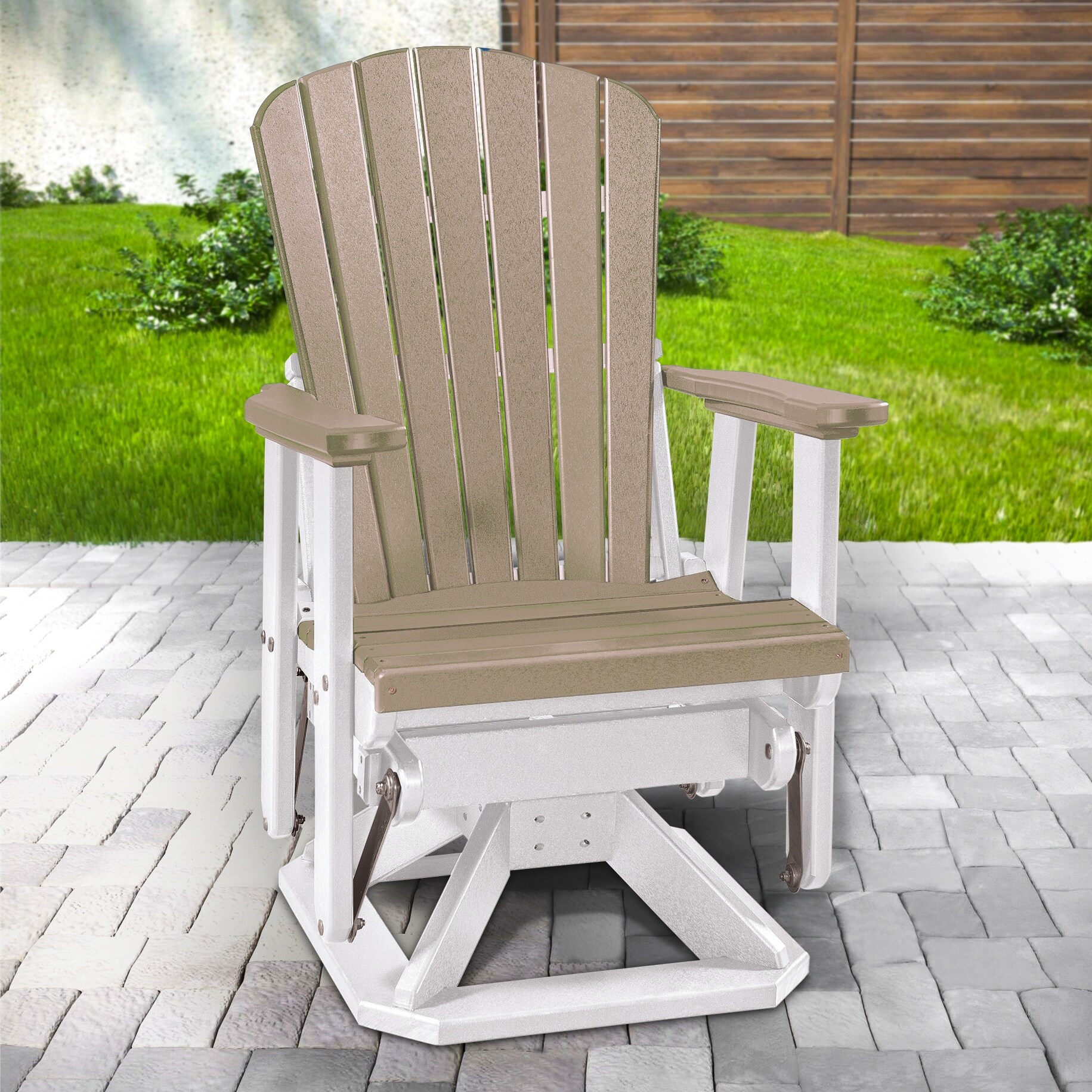 OS Home and Office Model Fan Back Swivel Glider in WeatherWood with a White Base