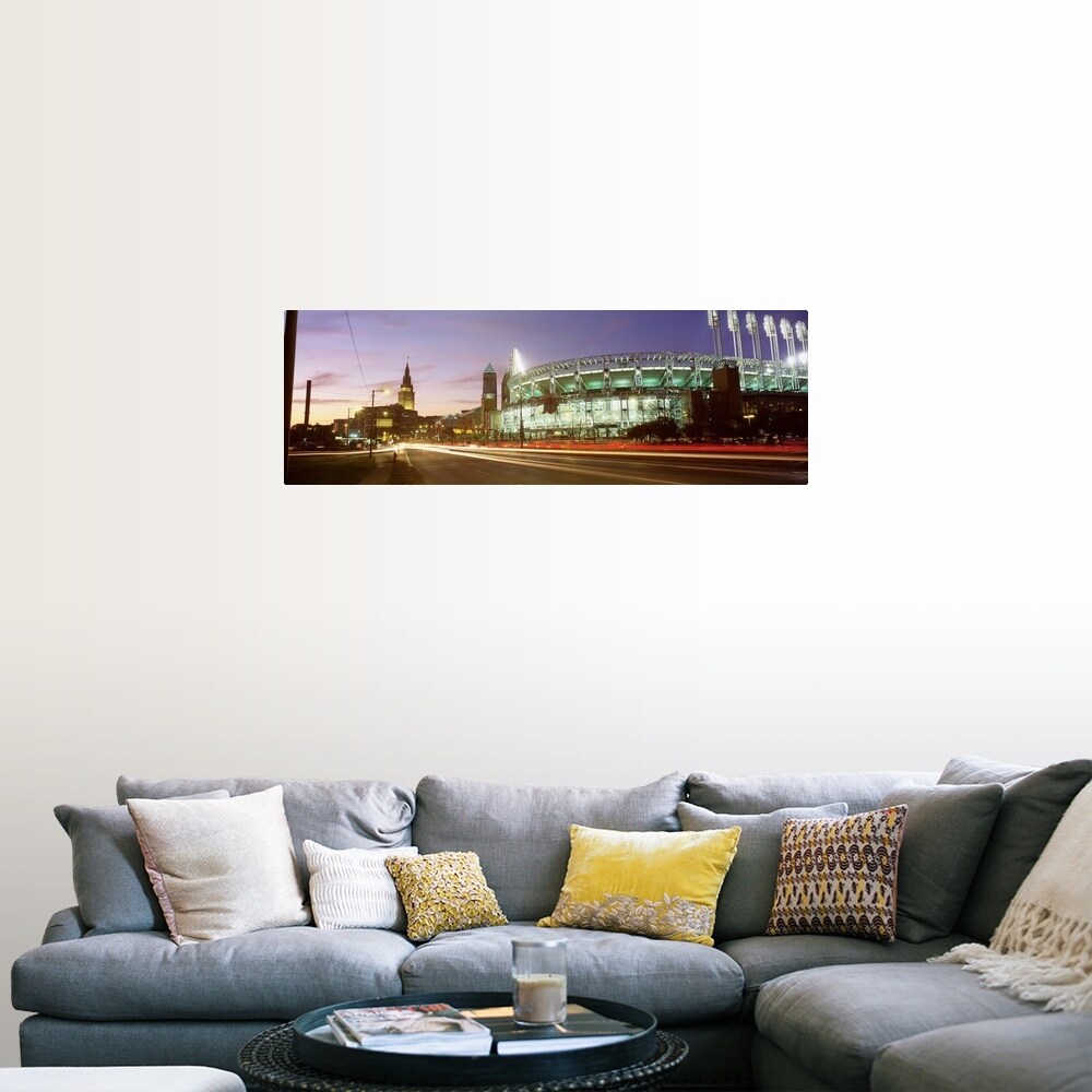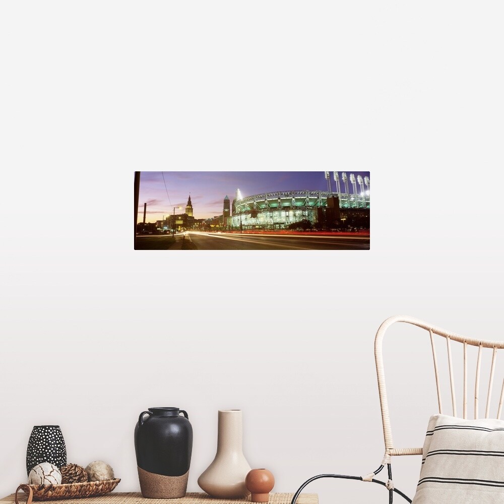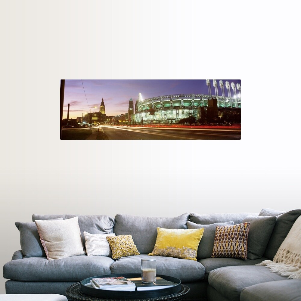 Easy Art Prints Panoramic Image 'Buildings lit up at night in a city, Cleveland, Cuyahoga County, Ohio' Canvas Art