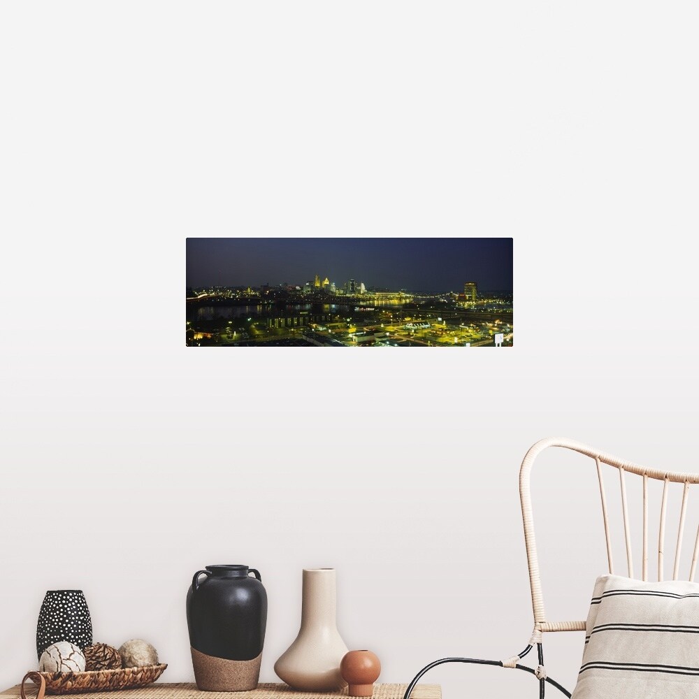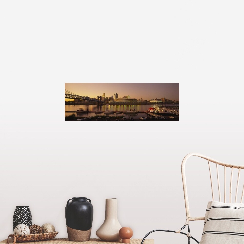 Easy Art Prints Panoramic Image 'Cincinnati skyline, Ohio and Ohio River as seen from Covington, KY' Canvas Art