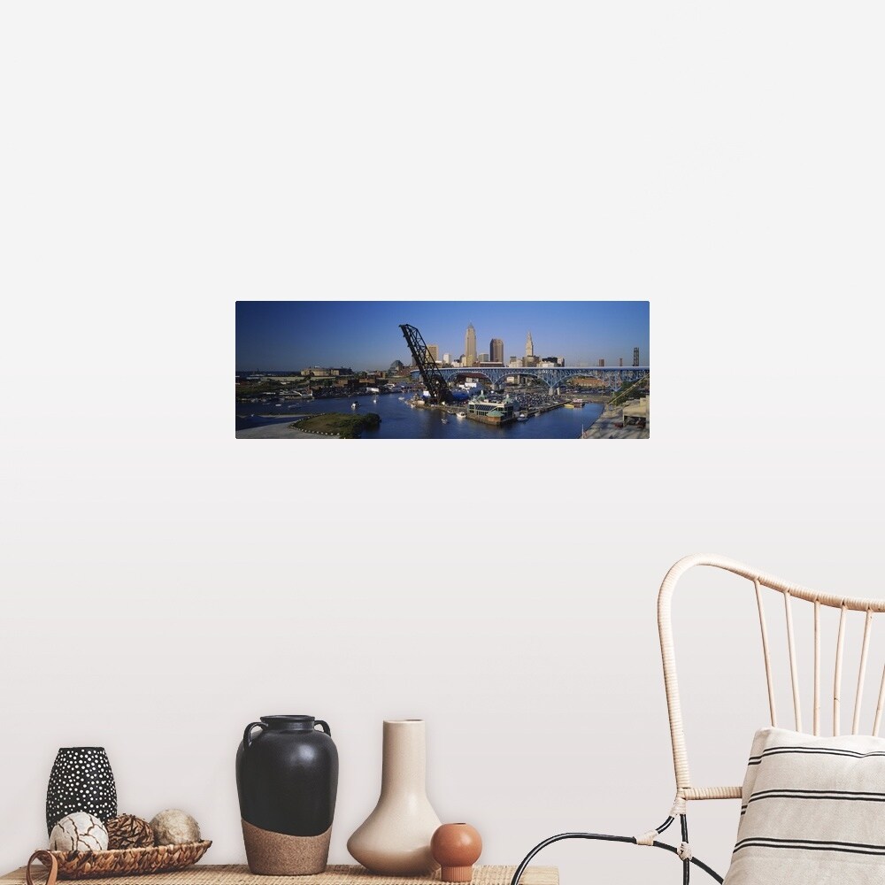 "High angle view of boats in a river, Cleveland, Ohio" Poster Print