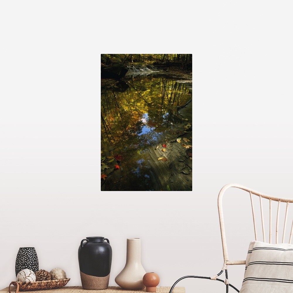 "Autumn color trees reflected in stream, Ohio" Poster Print - Multi