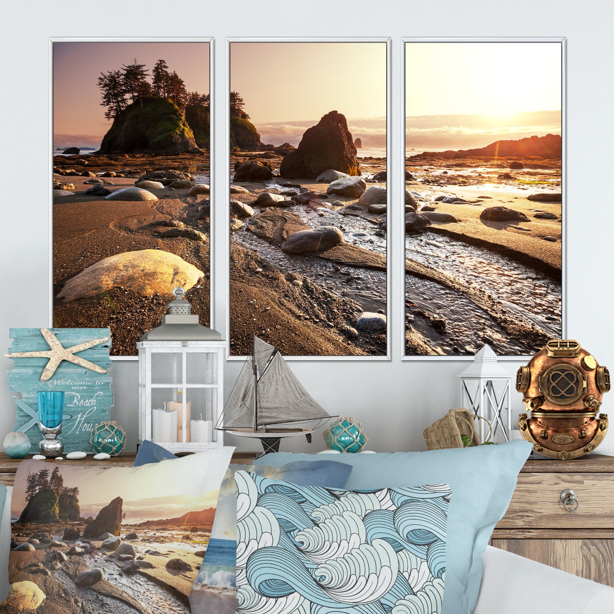 Designart "Olympic National Park Coast" Sea & Shore Framed Wall Art Set of 3 - 4 Colors of Frames