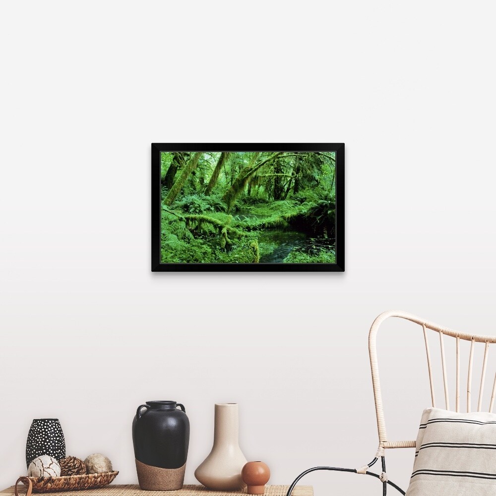 "Old-growth rain forest, Sol Duc Valley, Olympic National Park, Washington" Black Float Frame Canvas Art