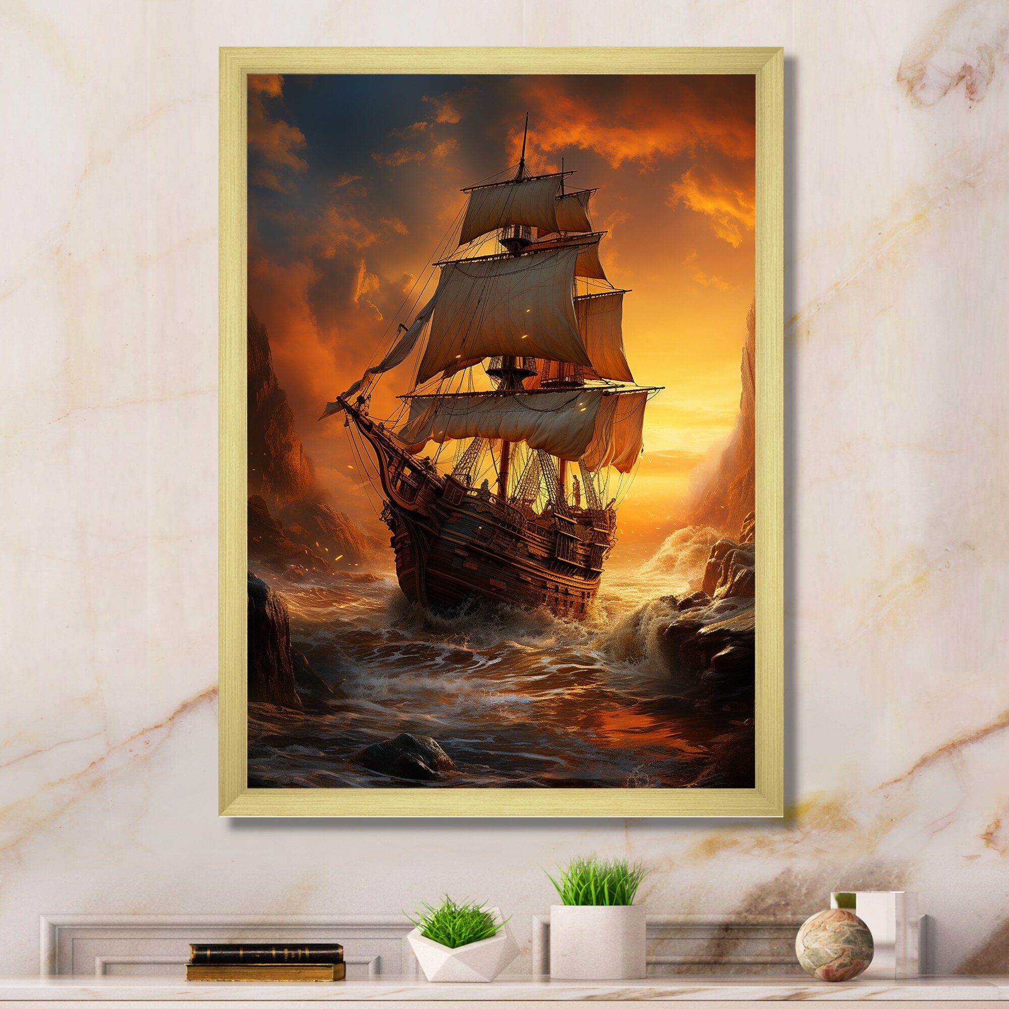 Designart "Pirate Boat Plunderers Legacy" Pirate Framed Canvas Print