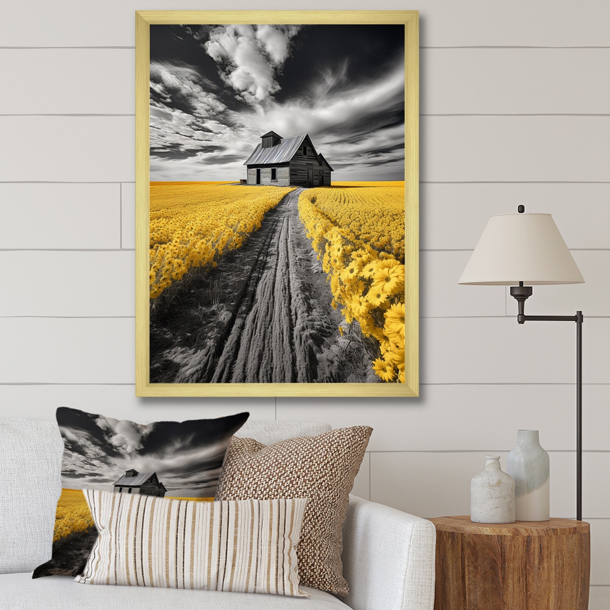 Designart "Barn Country Legacy Pointillism III" Barns Framed Wall Decor