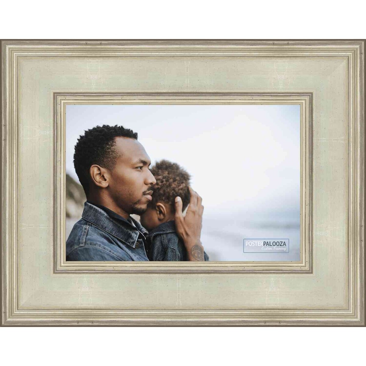 36x20 Distressed/Aged Antique Silver Complete Wood Picture Frame with UV Acrylic, Foam Board Backing, & Hardware