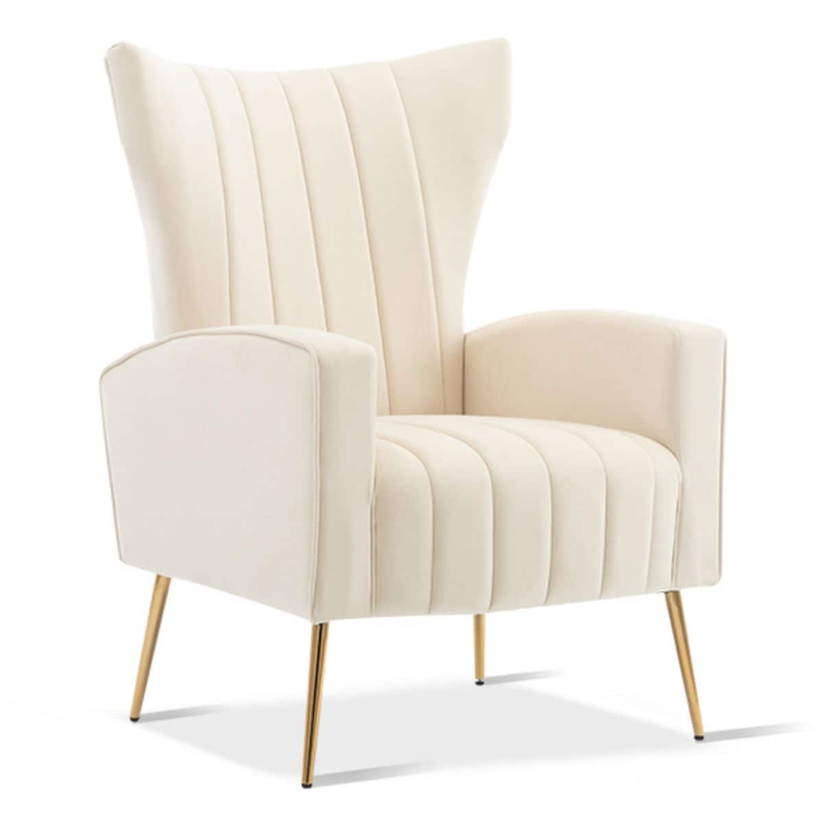 Velvet Accent Chair, Wingback Arm Chair with Gold Legs, Upholstered Single Sofa for Living Room Bedroom