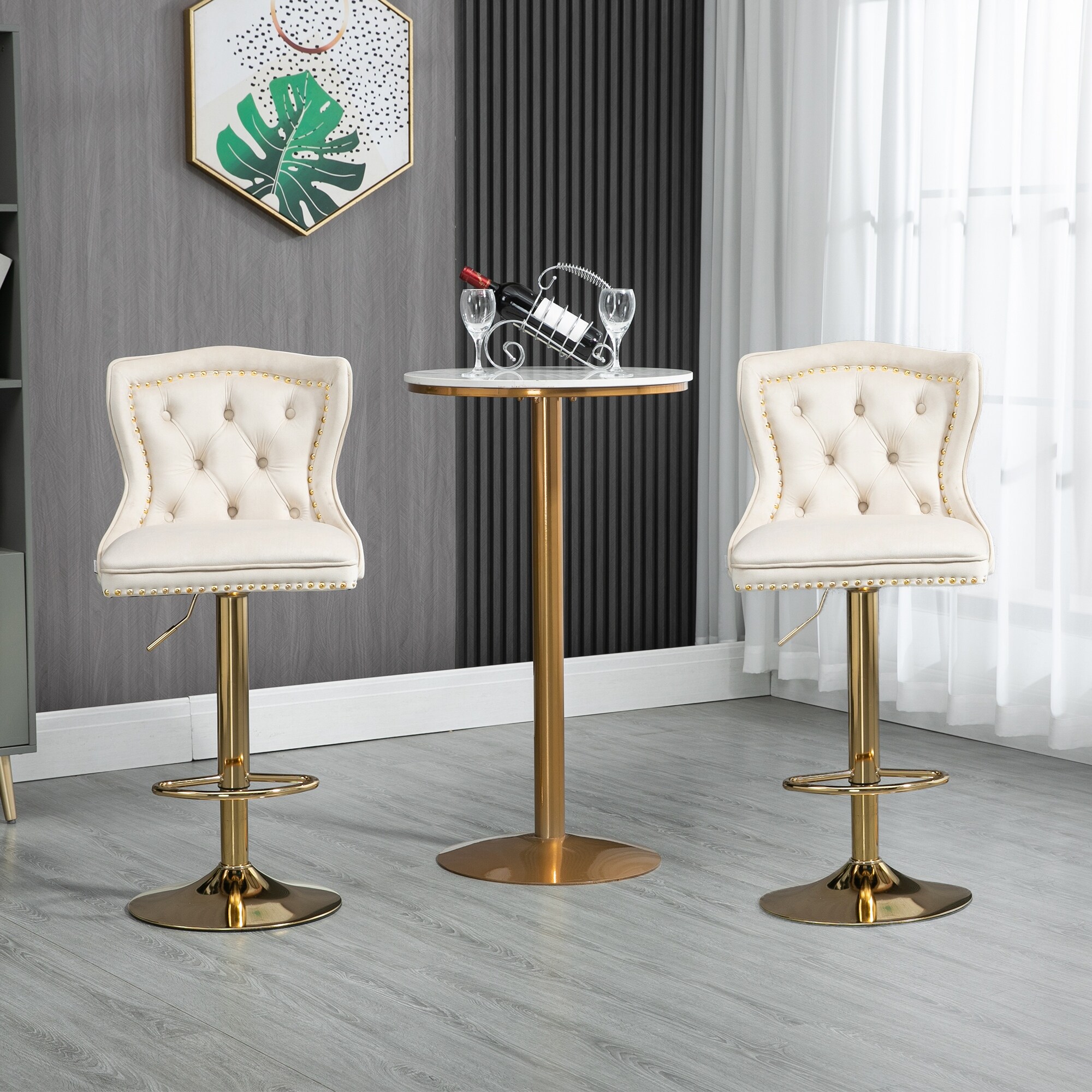 18.5" Velvet 2PC Barstool with Button Tufted Back, Nailhead Trim Footrest