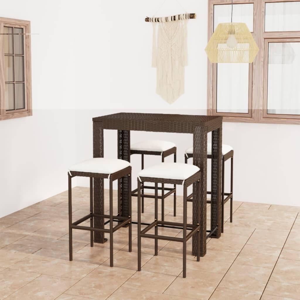 vidaXL 5 Piece Patio Bar Set with Cushions Poly Rattan Brown