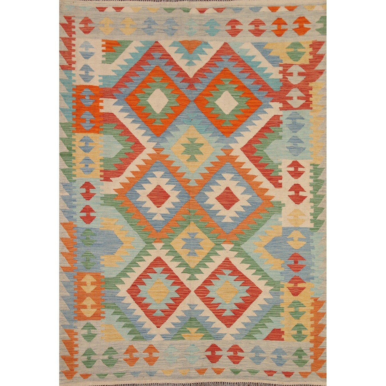Geometric Reversible Kilim Area Rug Hand-woven Bedroom Wool Carpet - 5'0" x 6'7"
