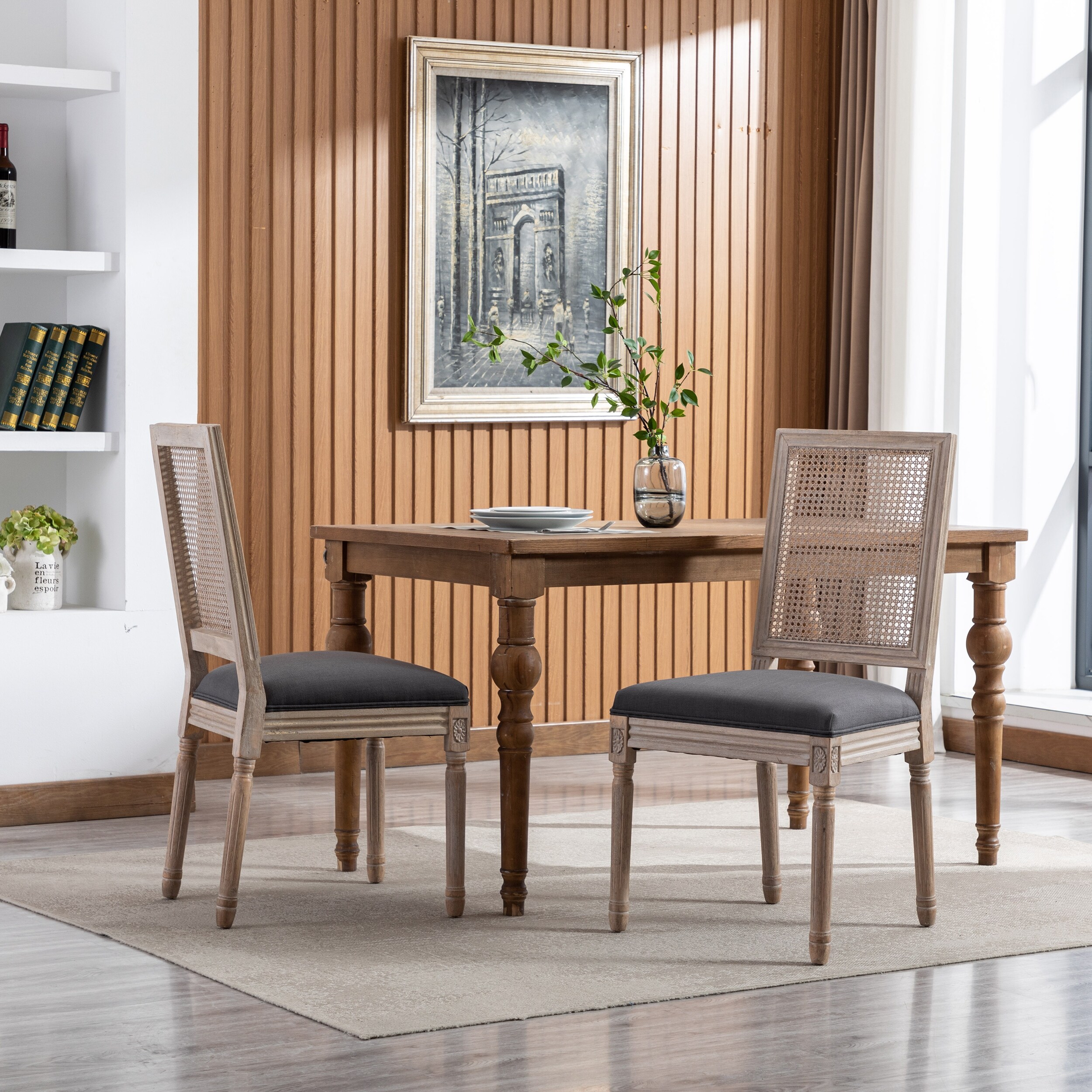Square Rattan Back Dining Chair Solid Wood Frame Set of 2