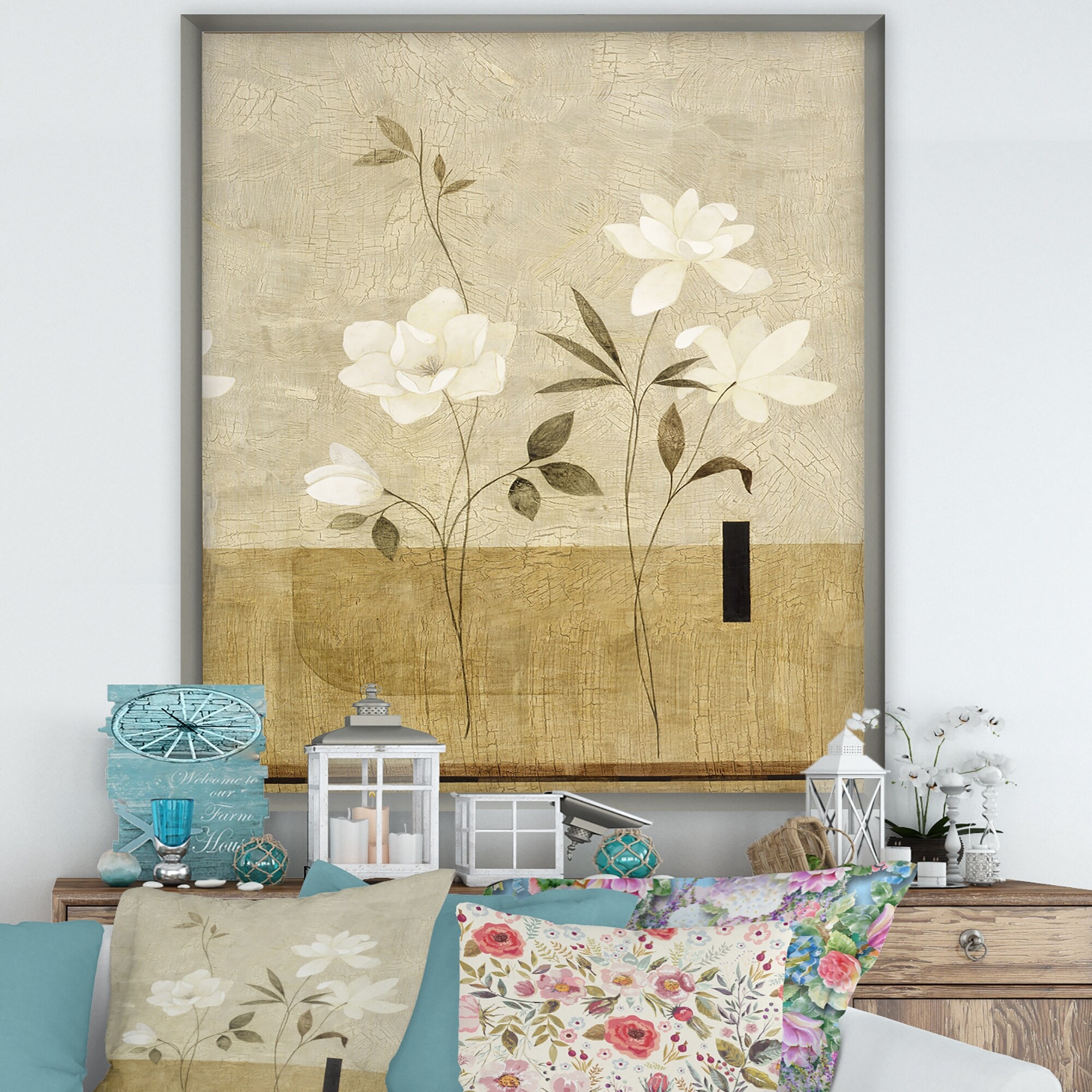 Designart "Painted White Flowers With Black Rectangle" Cottage Framed Art Print