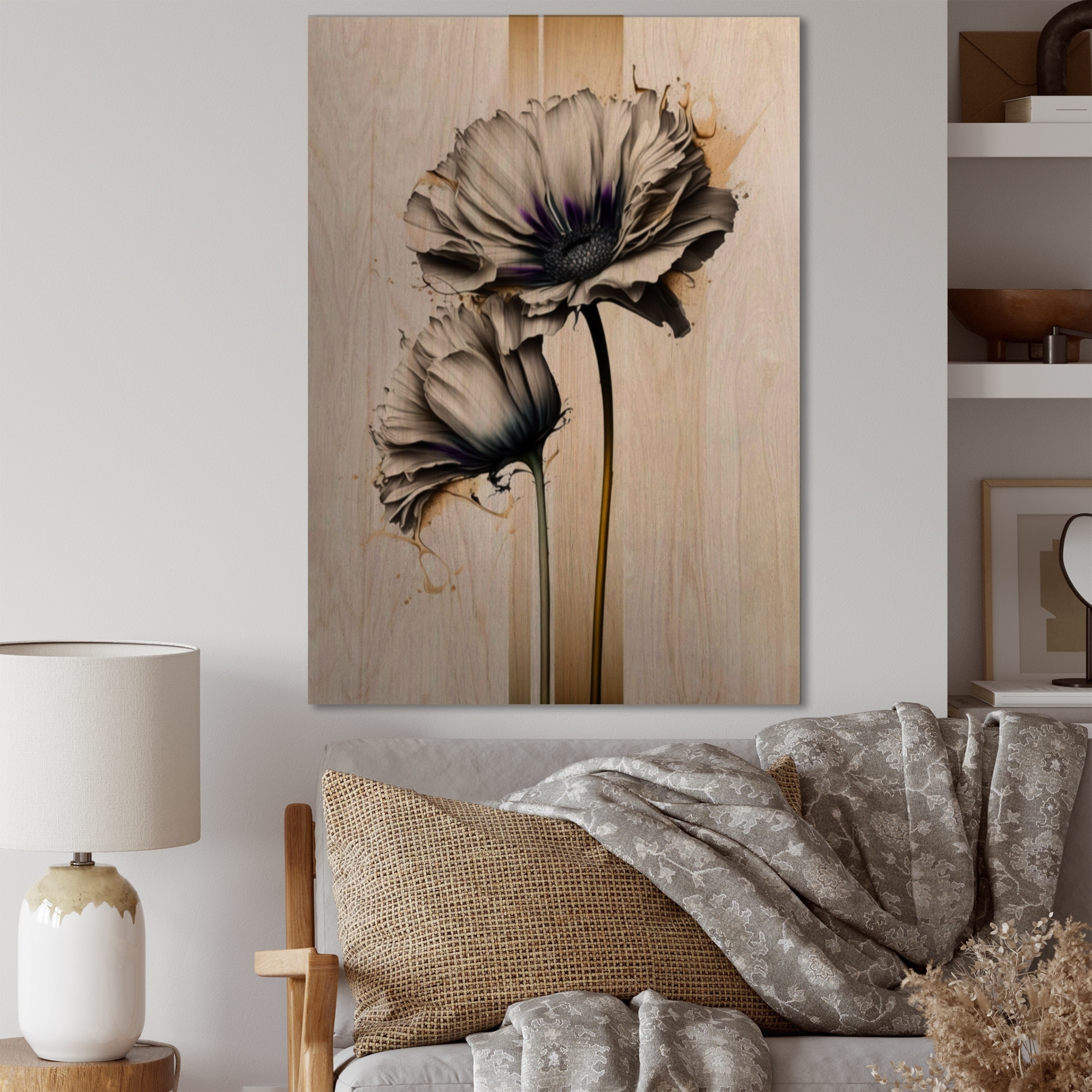 Designart 'White Gerbera Flower on Golden Beige Paint I' Floral Daisy Wood Wall Art - Natural Pine Wood