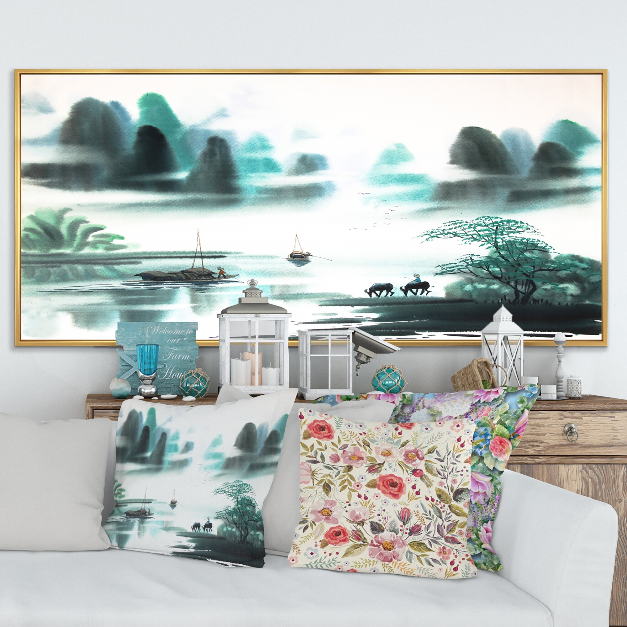 Designart "Chinese Landscape Ink Painting V" Landscapes Framed Canvas artwork