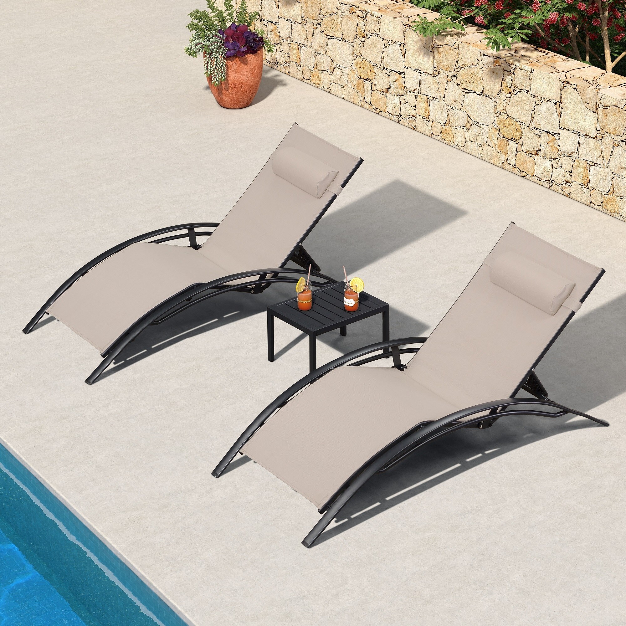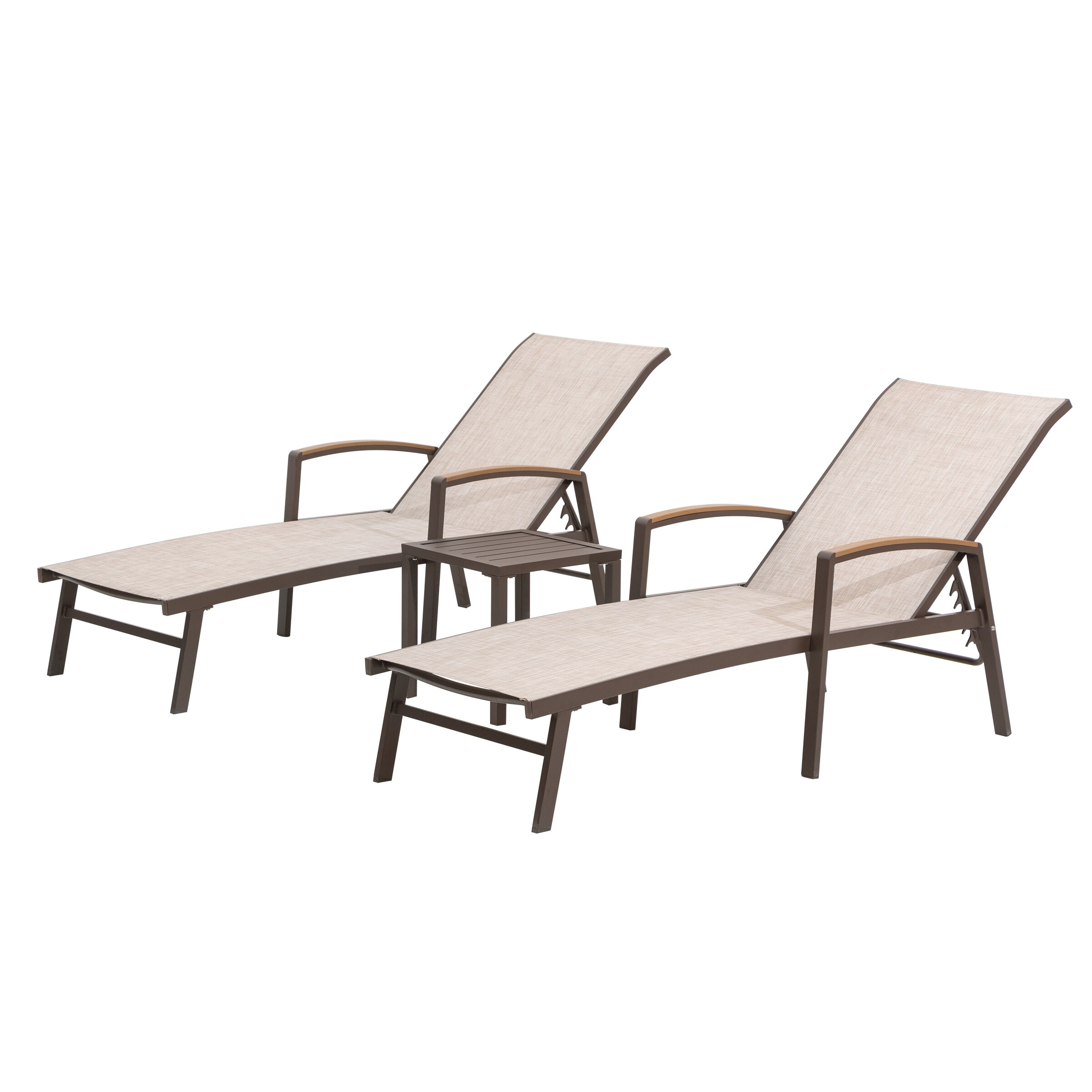 Outdoor Patio Recliner Set Adjustable Patio Chaise Lounge Chairs & Square Side Table (Set of 3) - 76.57" L * 23.03" W * 12.99" H