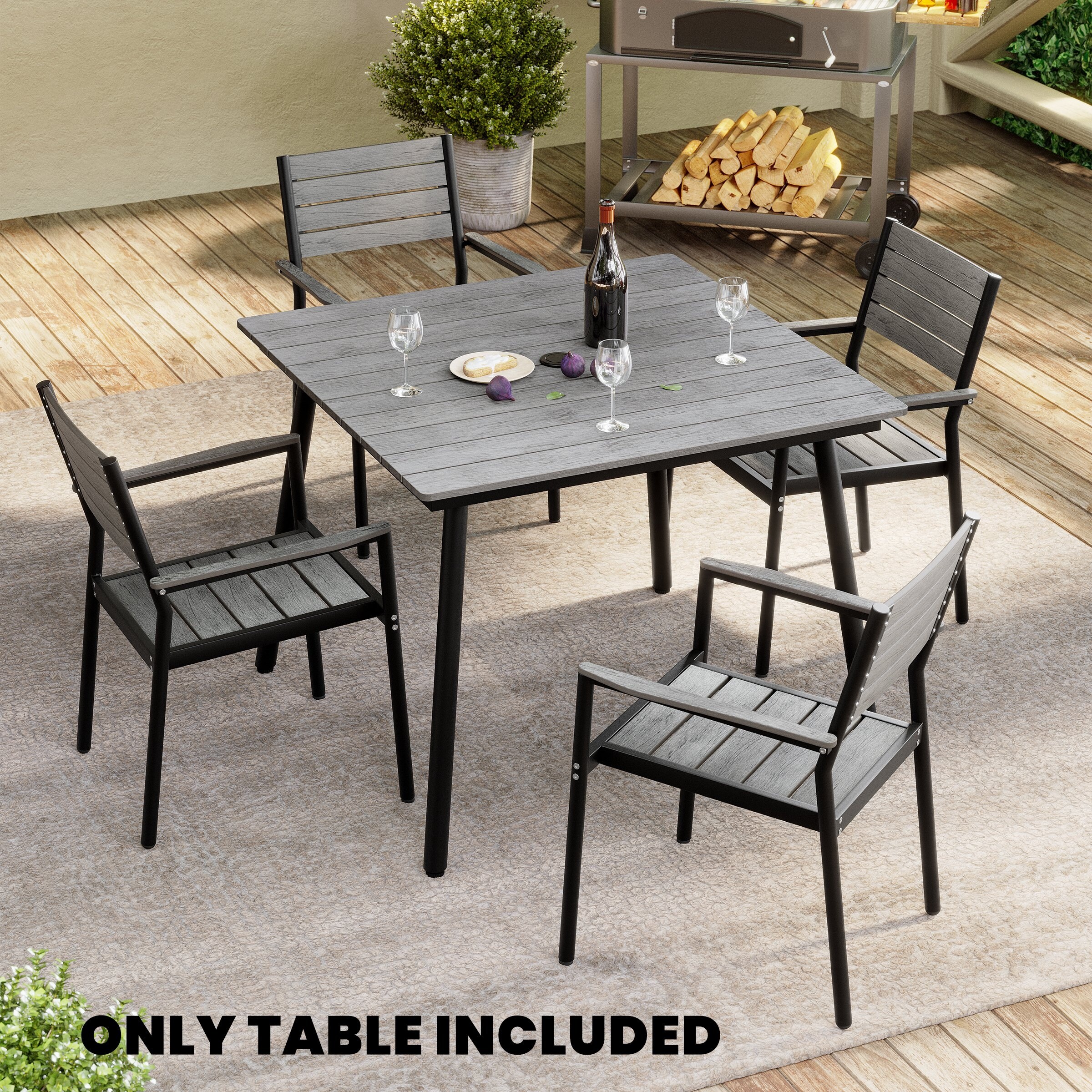 Patio 55" Rectangular Dining Table, Aluminum Frame with Grey Wood - 55.1"L X 31.5"W X 28.3"H