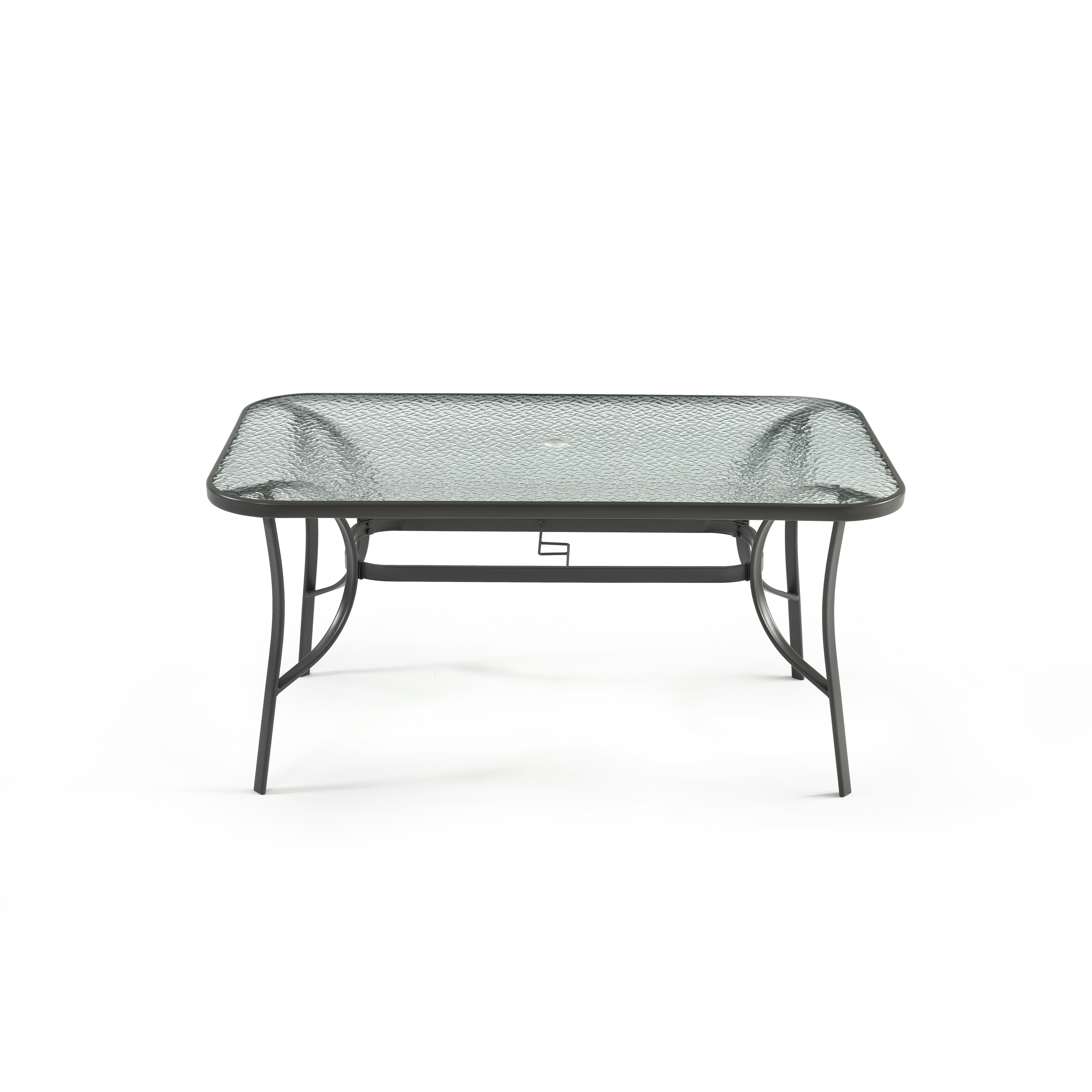 Aluminum Patio Dining Table with Black Frame and Umbrella Hole