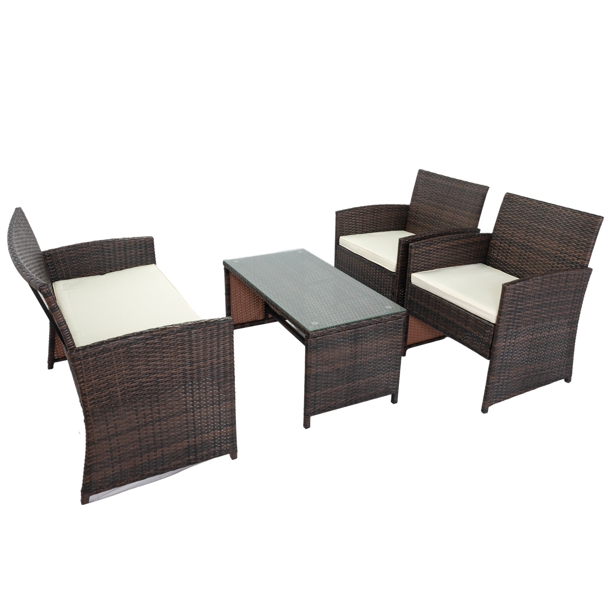 4 Pieces Outdoor Patio Set, Rattan Chairs,Loveseat & Cushion & Table - 4 Pieces