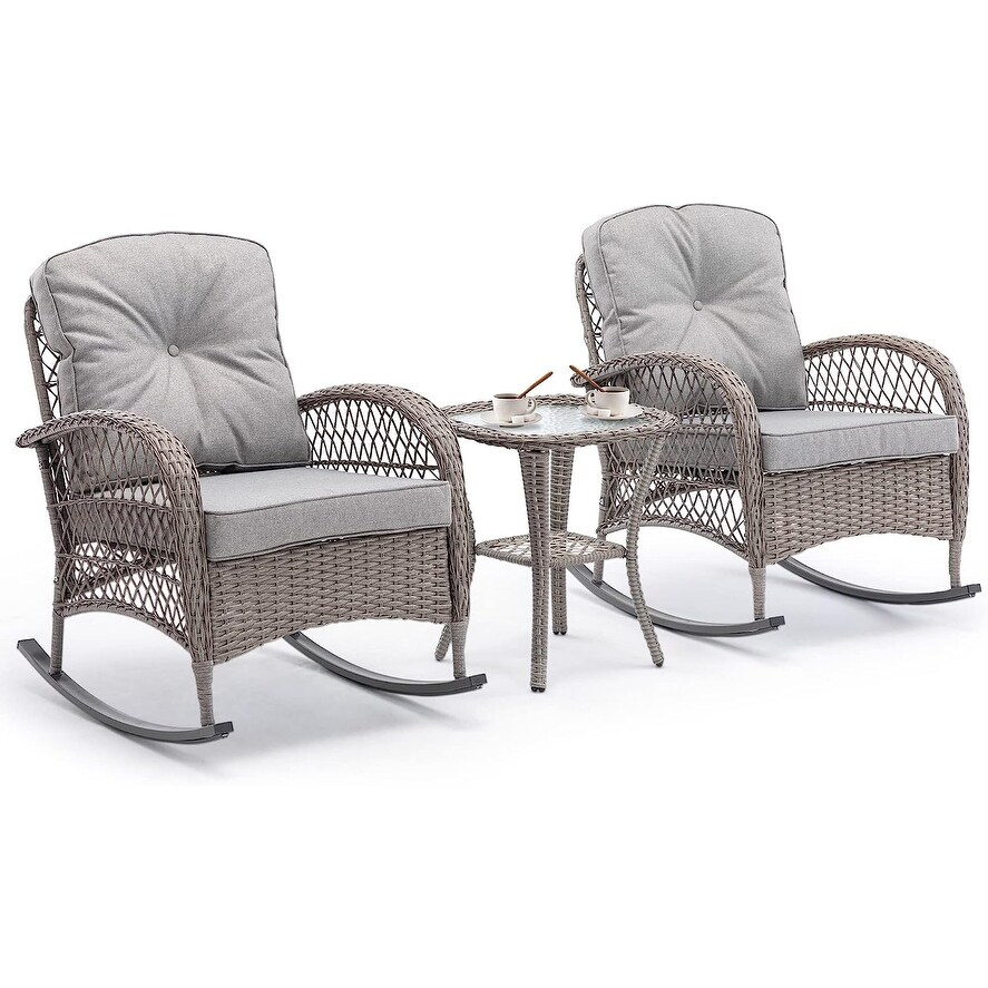 Wicker Outdoor Patio Bistro Set Rocking Chairsand Table Set of 3