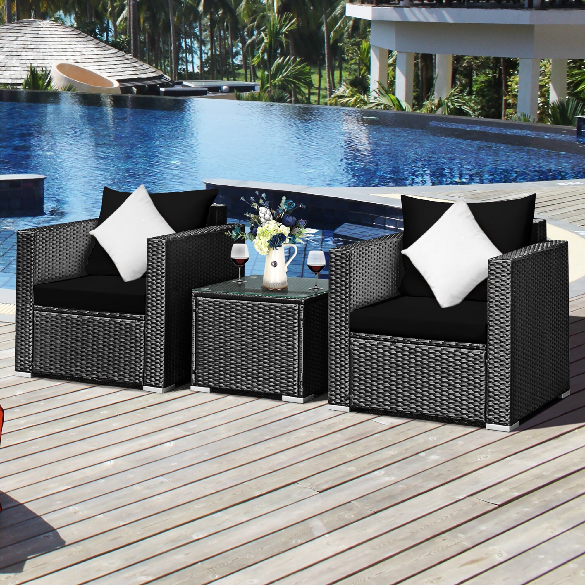 Costway 3PCS Patio Rattan Wicker Furniture Set Sofa Table W/Cushion