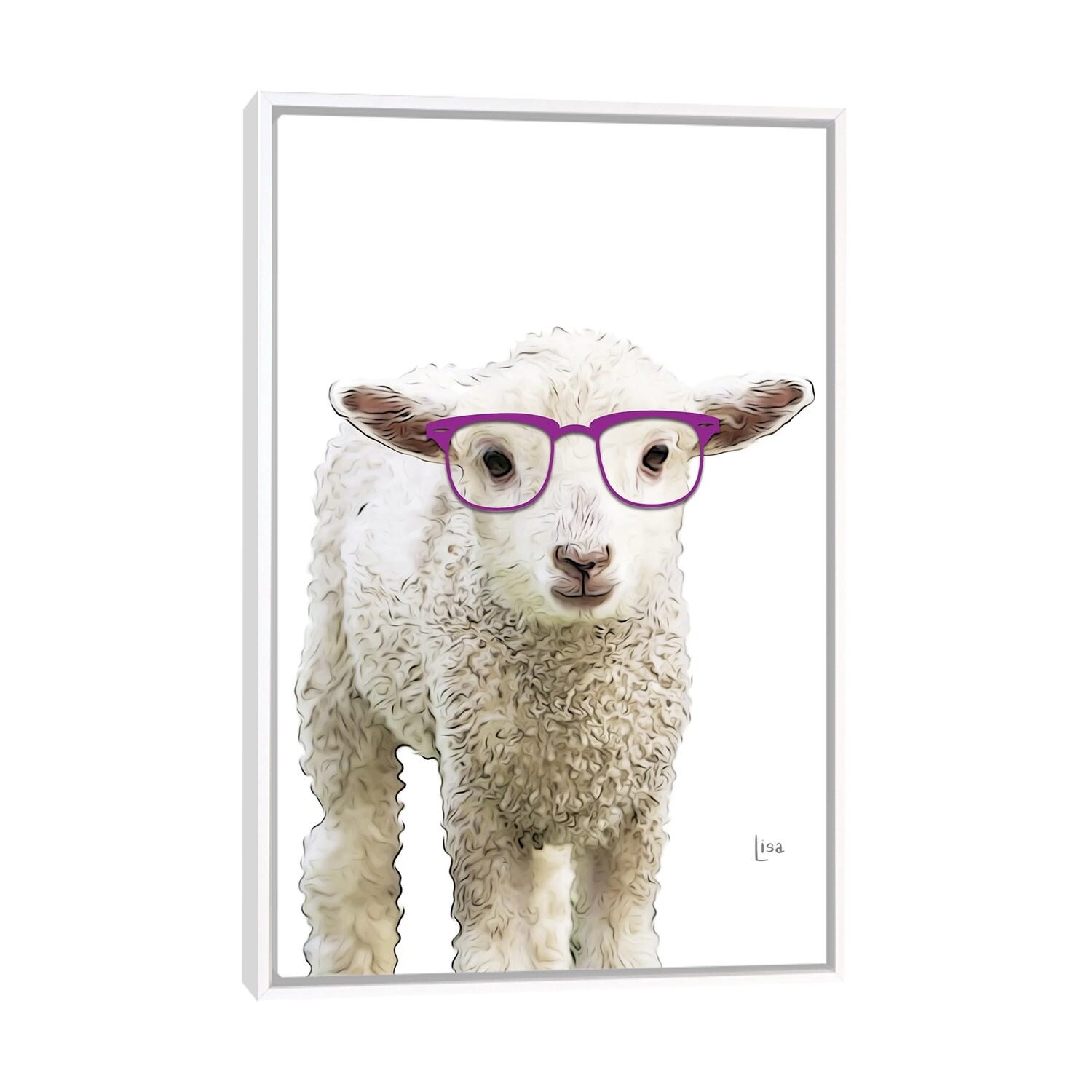 iCanvas "Color Sheep With Purple Glasses" by Printable Lisa's Pets Framed Canvas Print