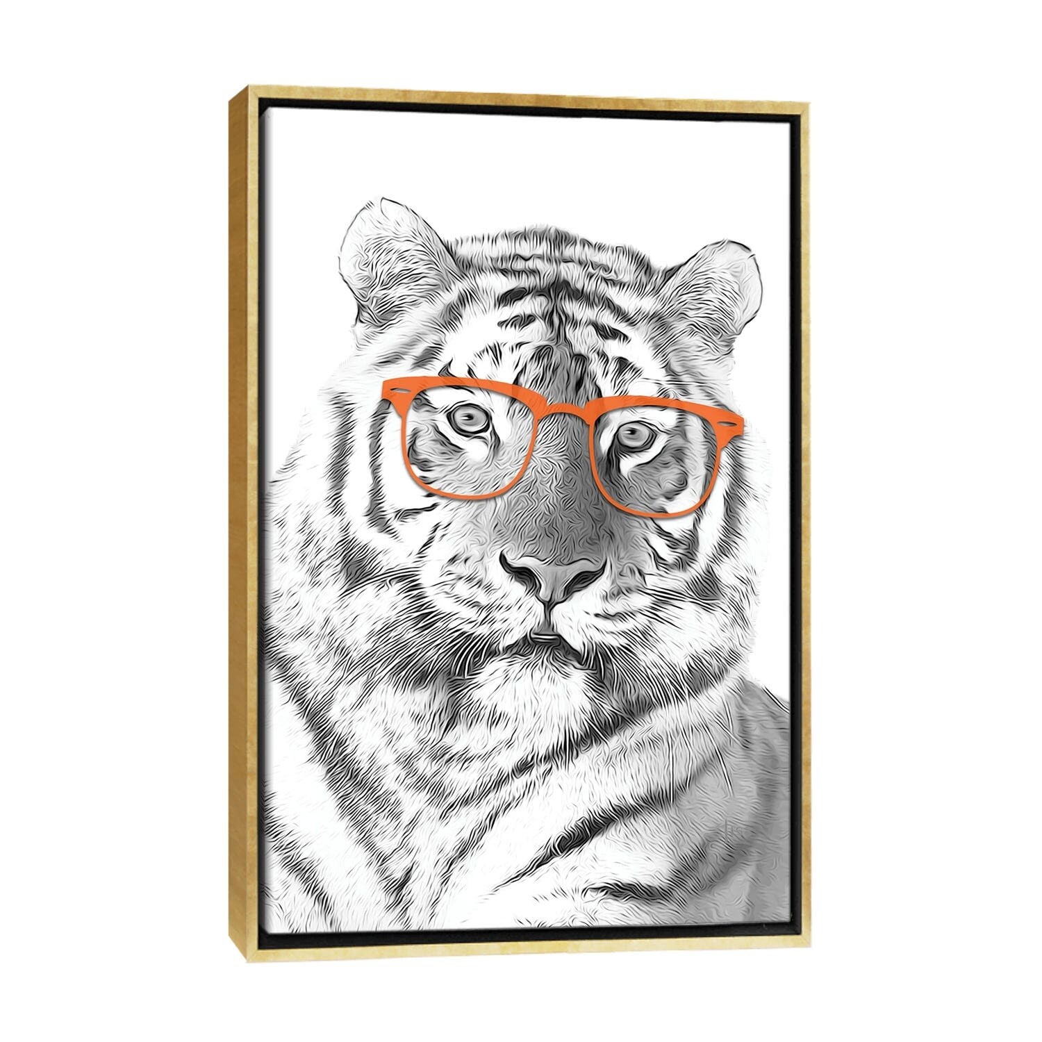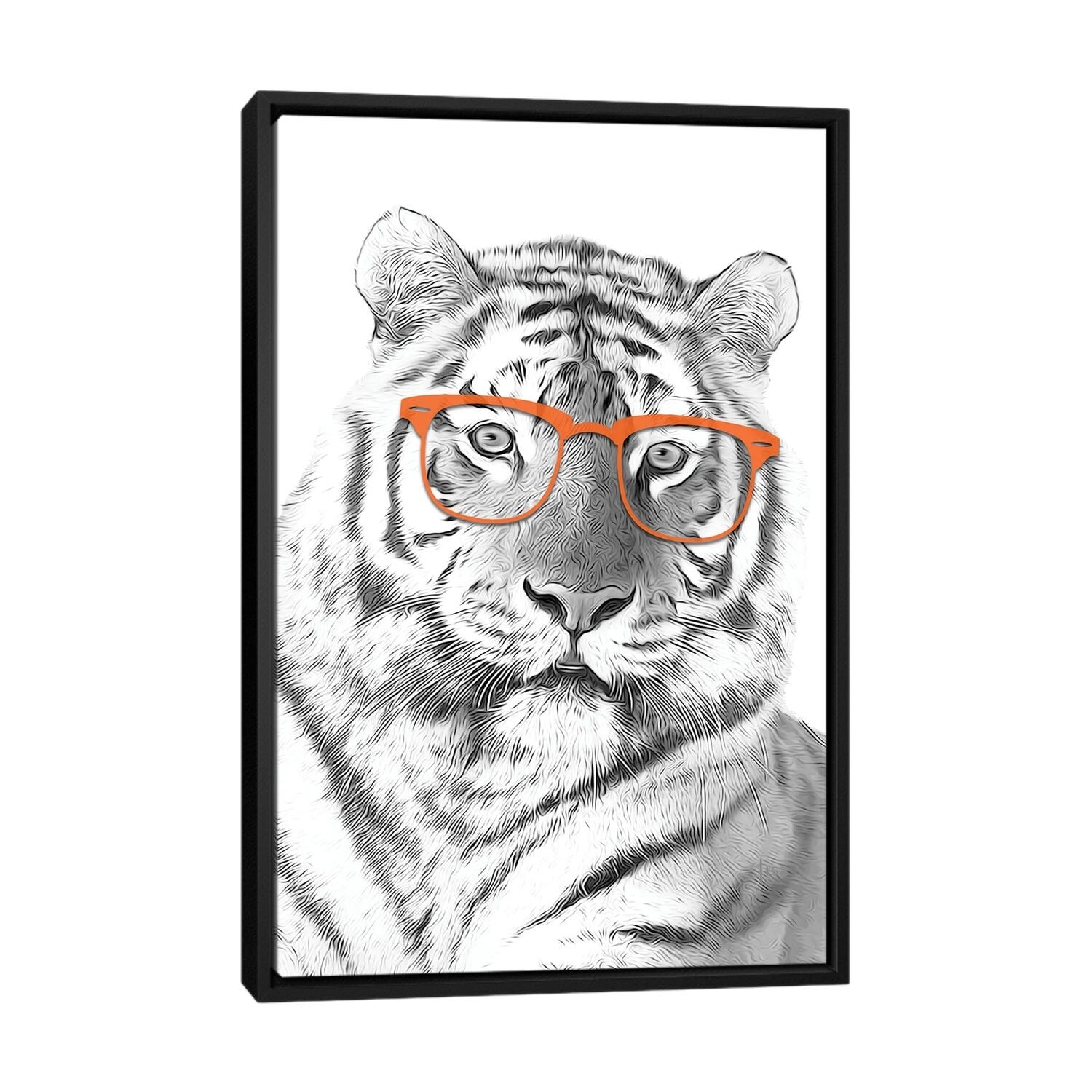 iCanvas "Tiger With Orange Glasses" by Printable Lisa's Pets Framed Canvas Print
