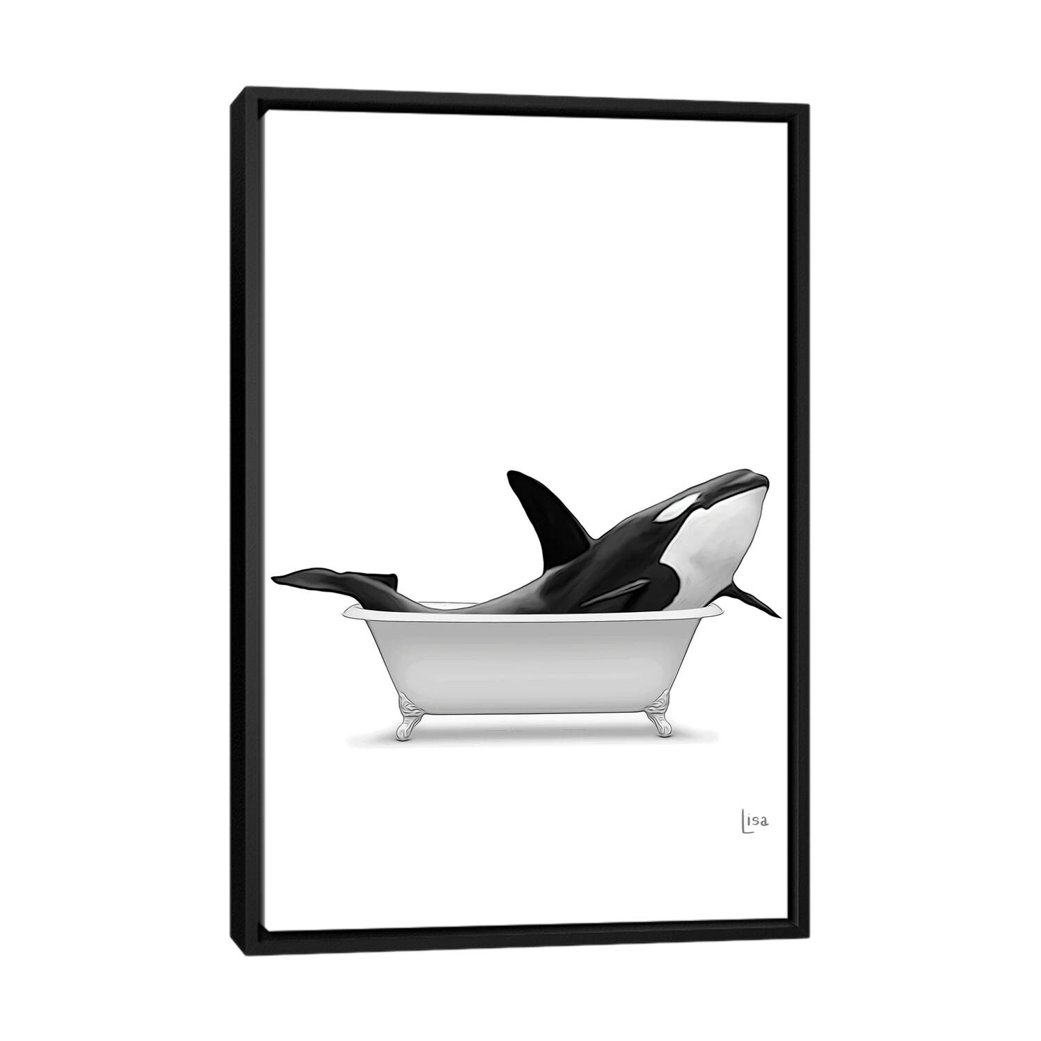 iCanvas "Whale In Bathtub Black And White" by Printable Lisa's Pets Framed Canvas Print