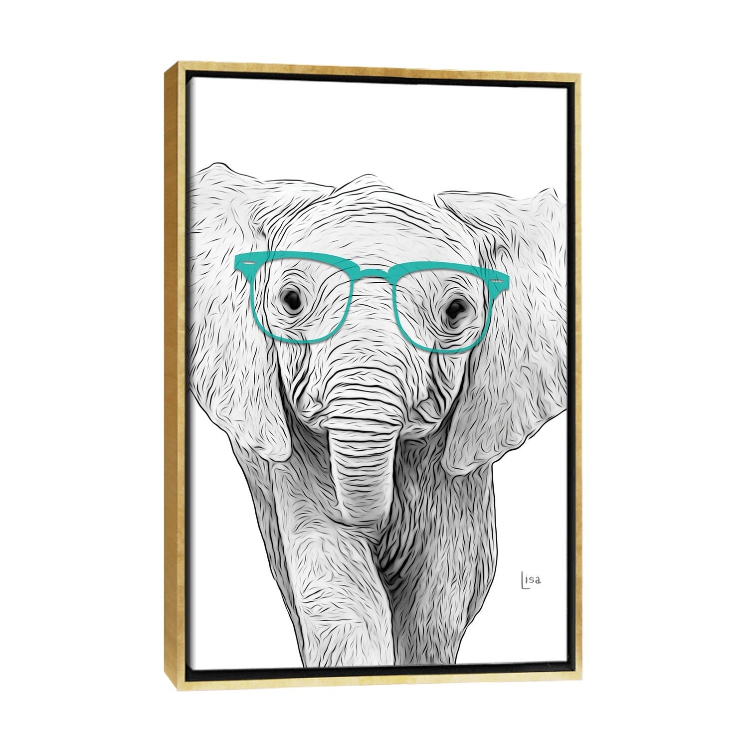 iCanvas "Elephant With Blue Glasses" by Printable Lisa's Pets Framed Canvas Print