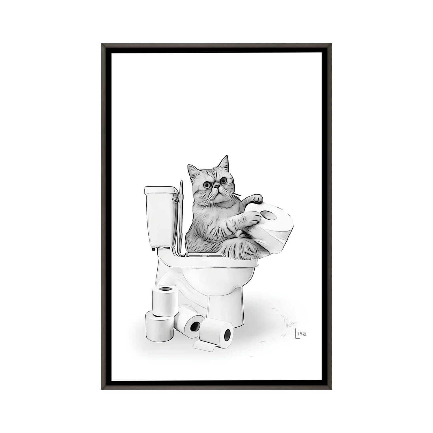 iCanvas "Cat On the Toilet" by Printable Lisa's Pets Framed