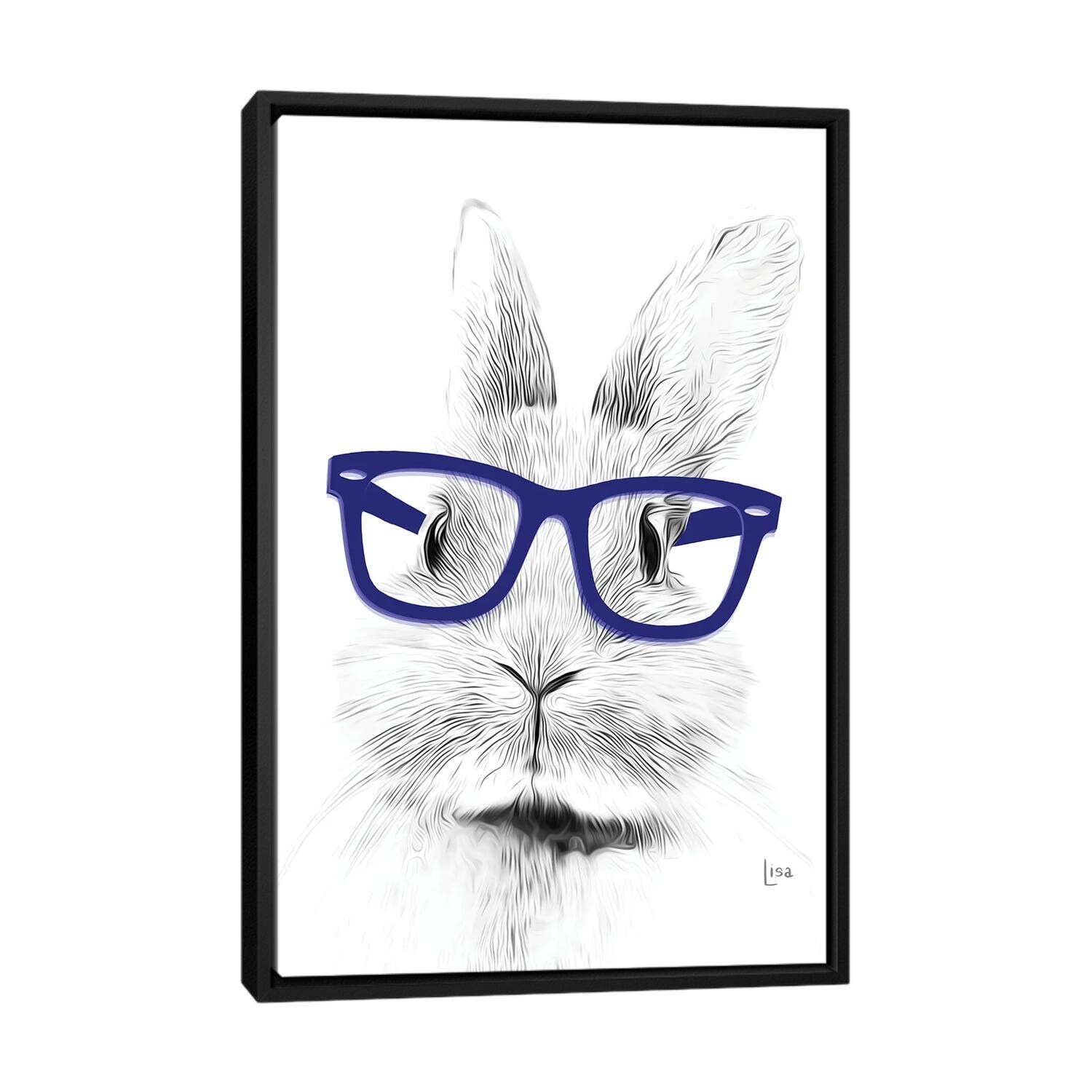 iCanvas "Bunny With Blue Glasses" by Printable Lisa's Pets Framed Canvas Print