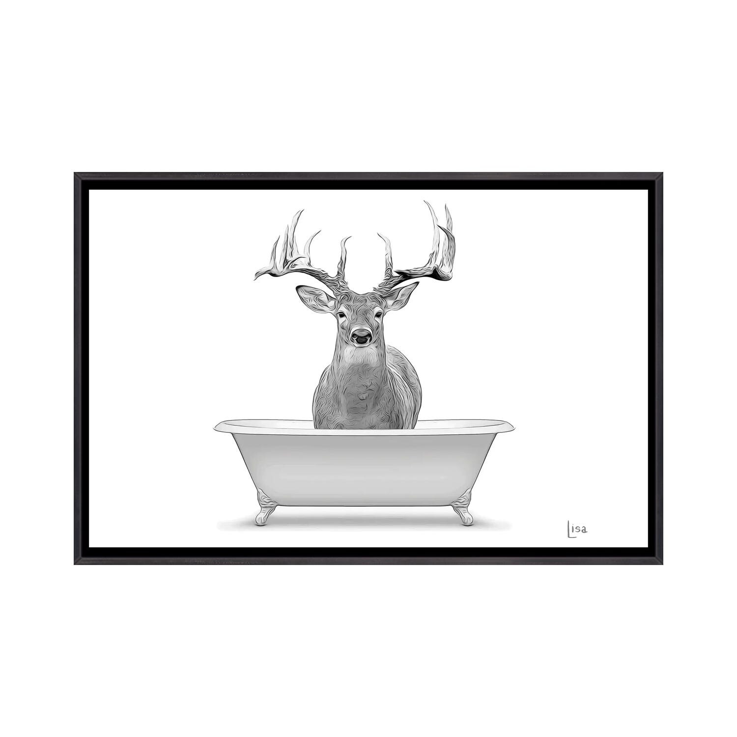 iCanvas "Deer In Bw Bathtub" by Printable Lisa's Pets Framed