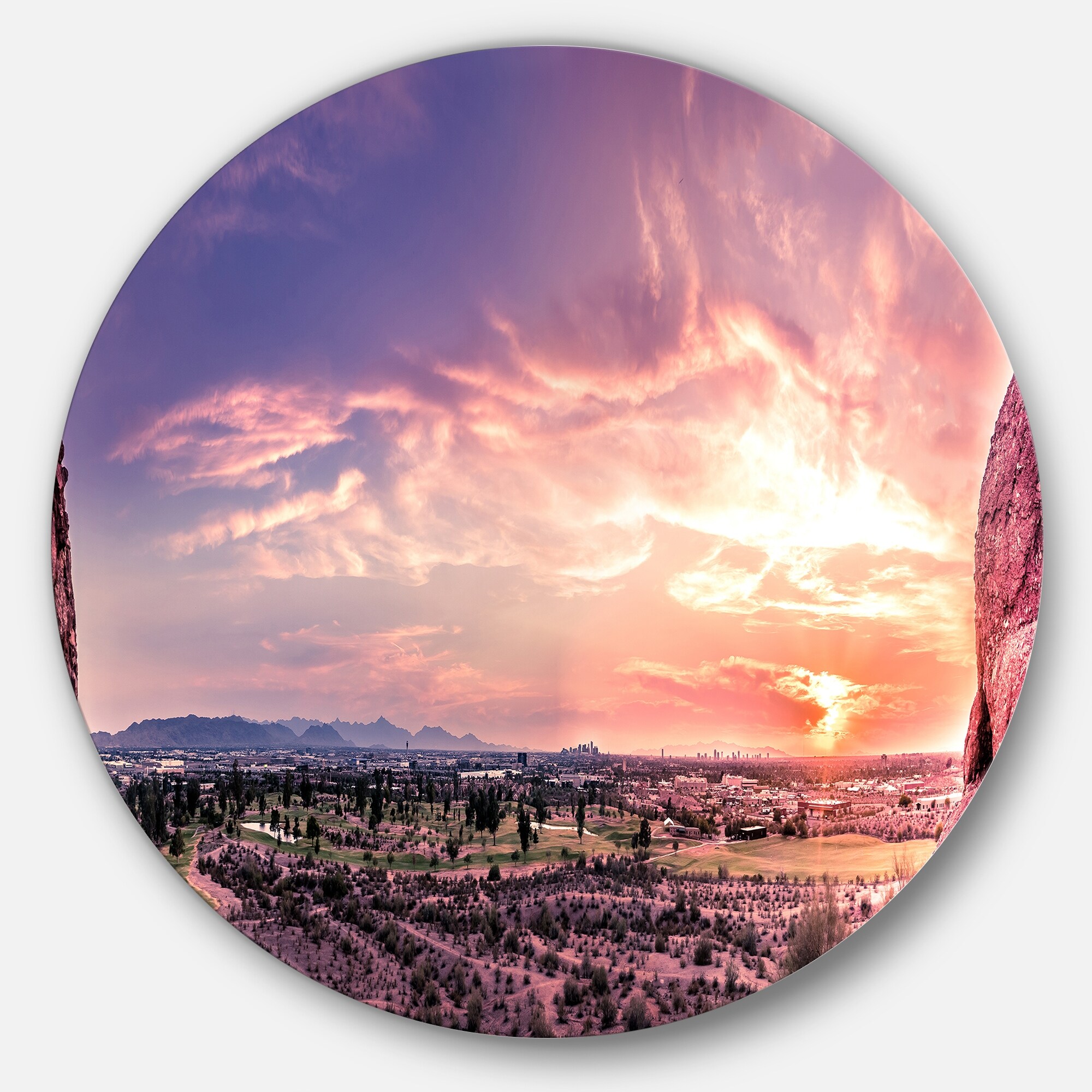 Designart 'Evening Red Sky over Phoenix Arizona' Landscape Large Disc Metal Wall art