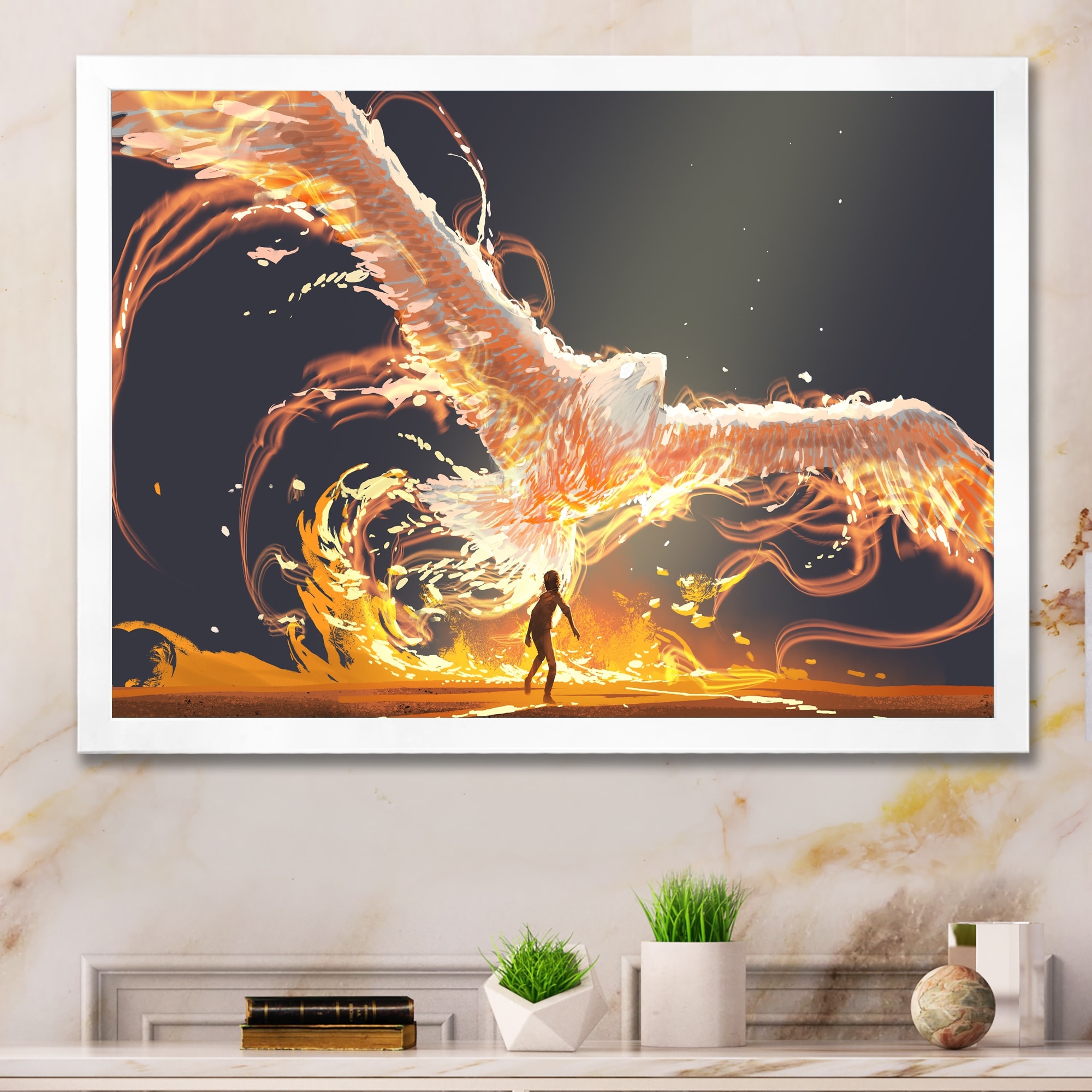 Designart "Video Game Phoenix Bird Flying" Modern Framed Art Print