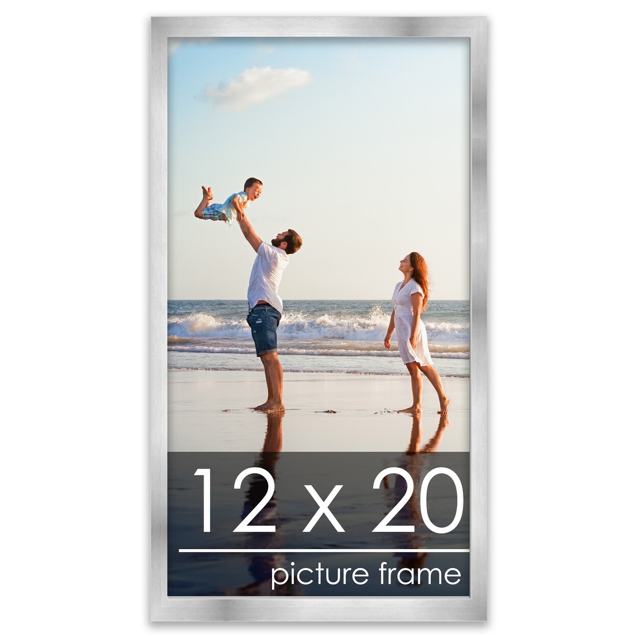 12x20 Frame Silver Pewter Wood Picture Frame with UV Acrylic, Foam Board Backing, & Hardware