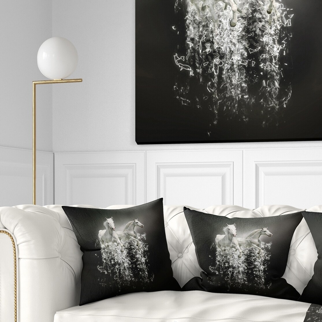 Designart 'White Horse Running in Water' Animal Throw Pillow