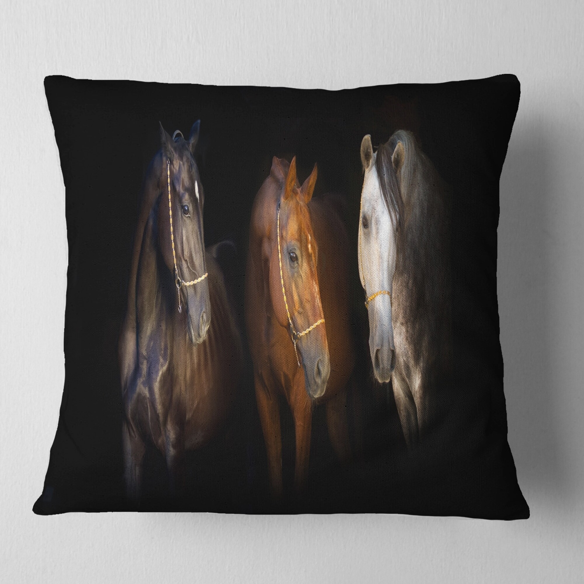 Designart 'Three Horses with Golden Bridle' Animal Throw Pillow