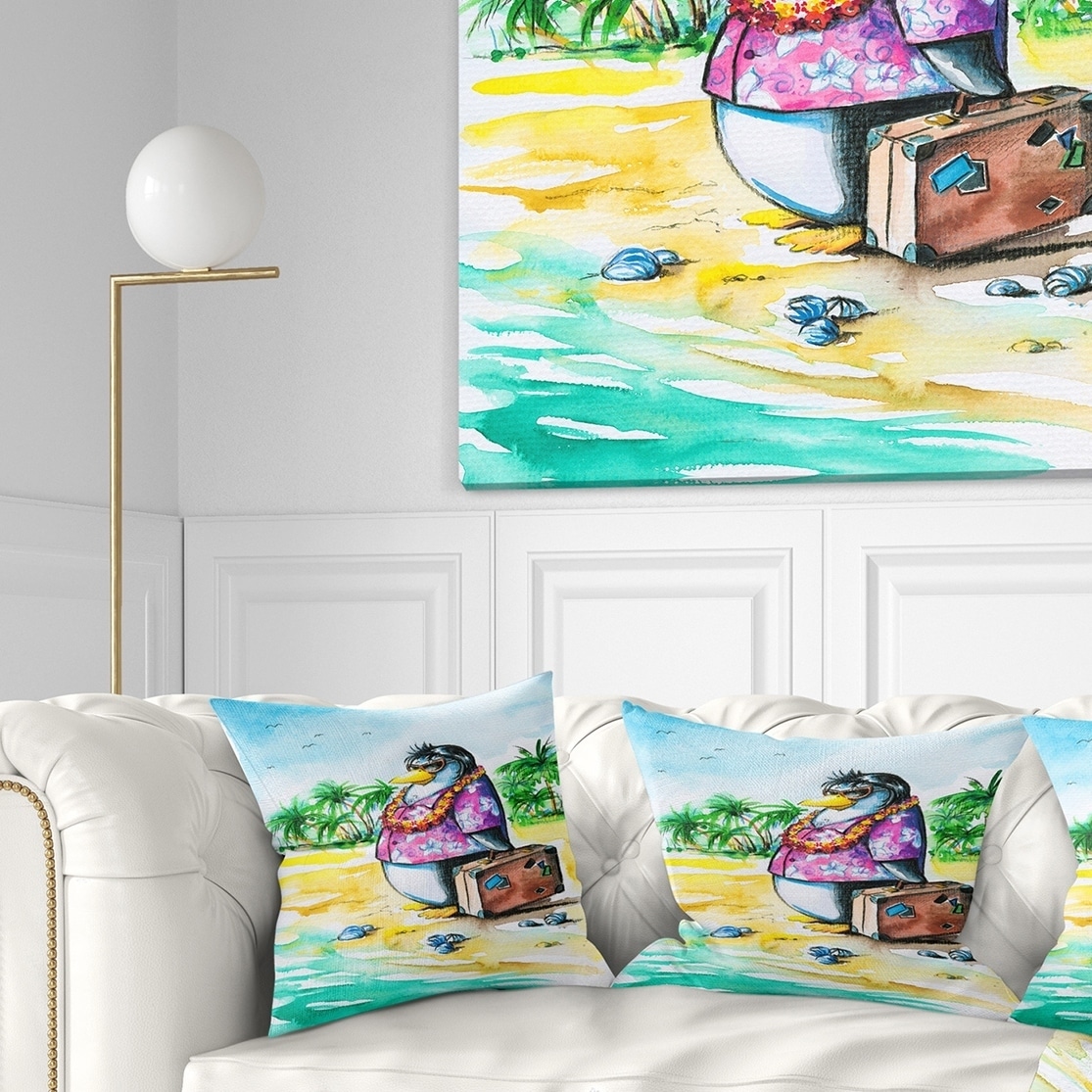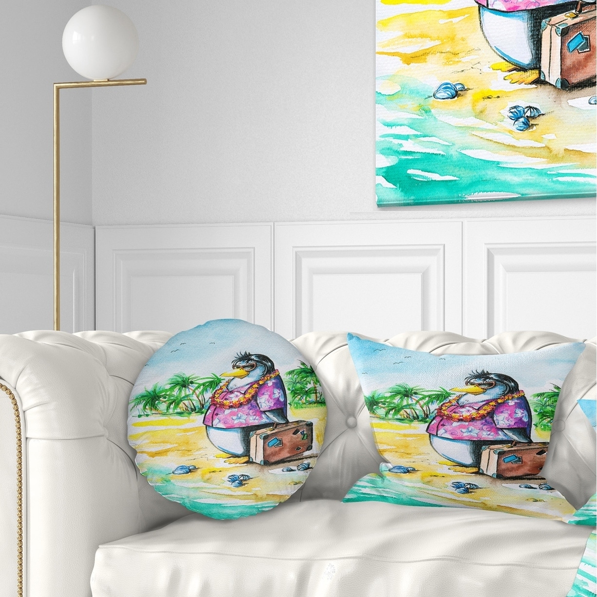 Designart 'Designart Penguin Enjoying Holidays on Beach' Cartoon Animal Throw Pillow