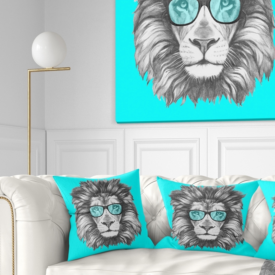 Designart 'Funny Lion with Blue Glasses' Animal Throw Pillow
