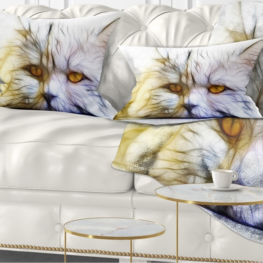 Designart 'Cute White Cat Fractal Illustration' Animal Throw Pillow