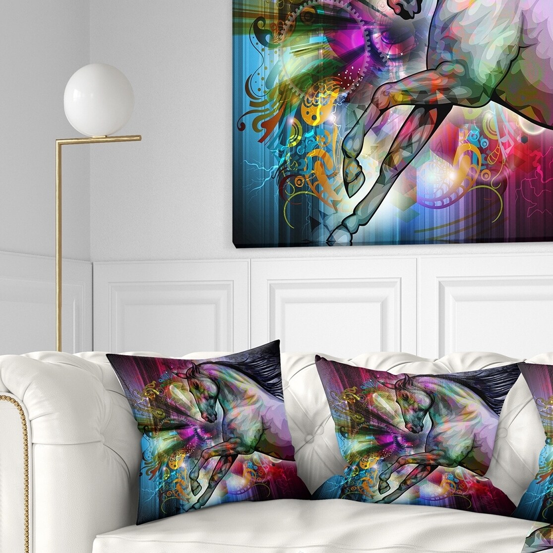 Designart 'Horse over Colorful Abstract Image' Animal Throw Pillow