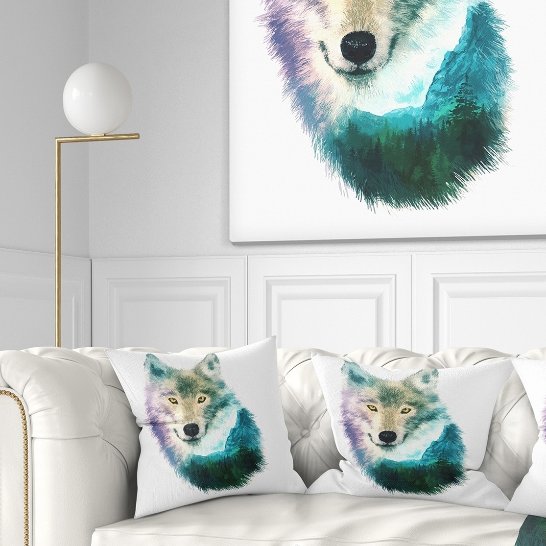 Designart 'Wolf Double Exposure Illustration' Animal Throw Pillow