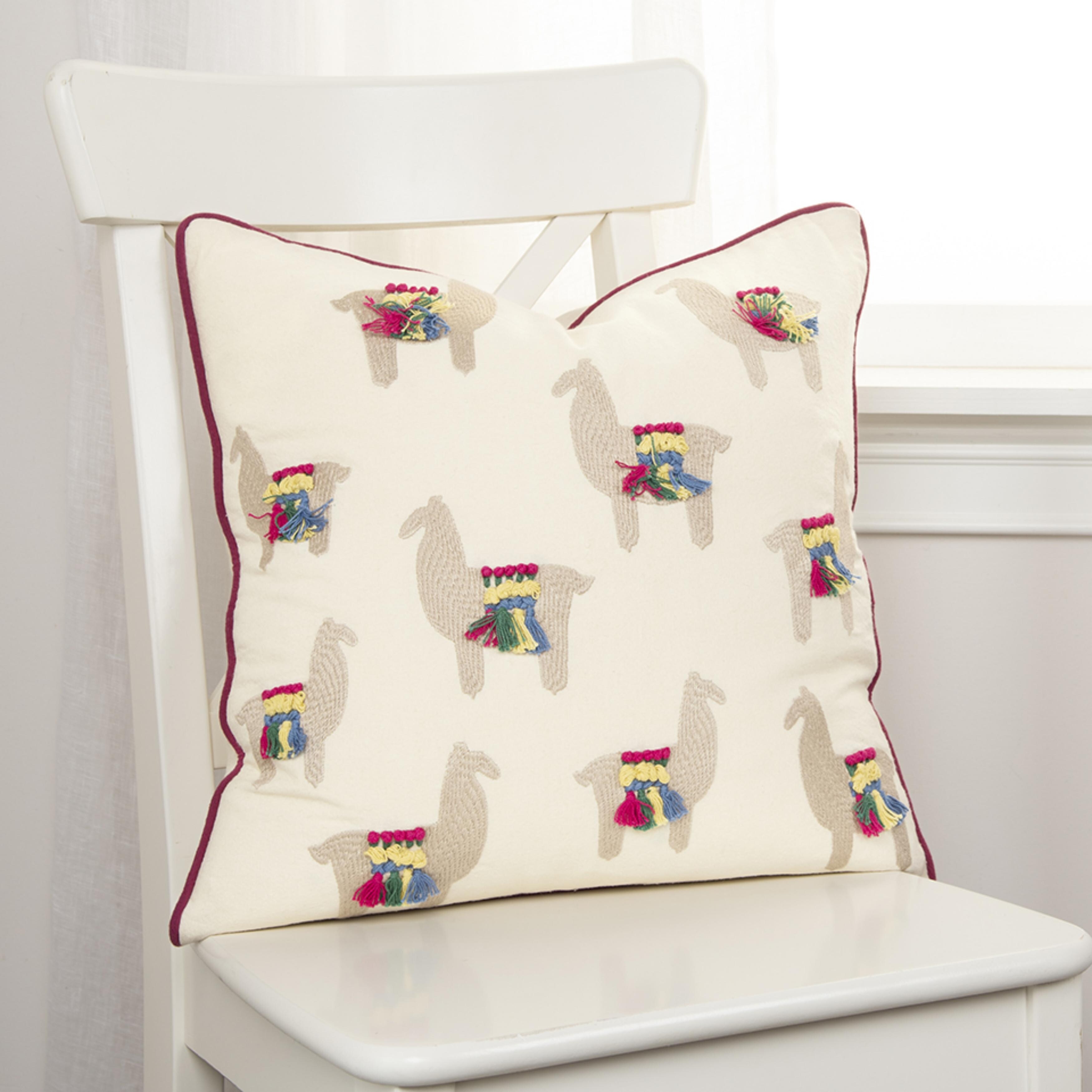Ivory / Multi Brights Animal 100% Cotton Casement Throw Pillow