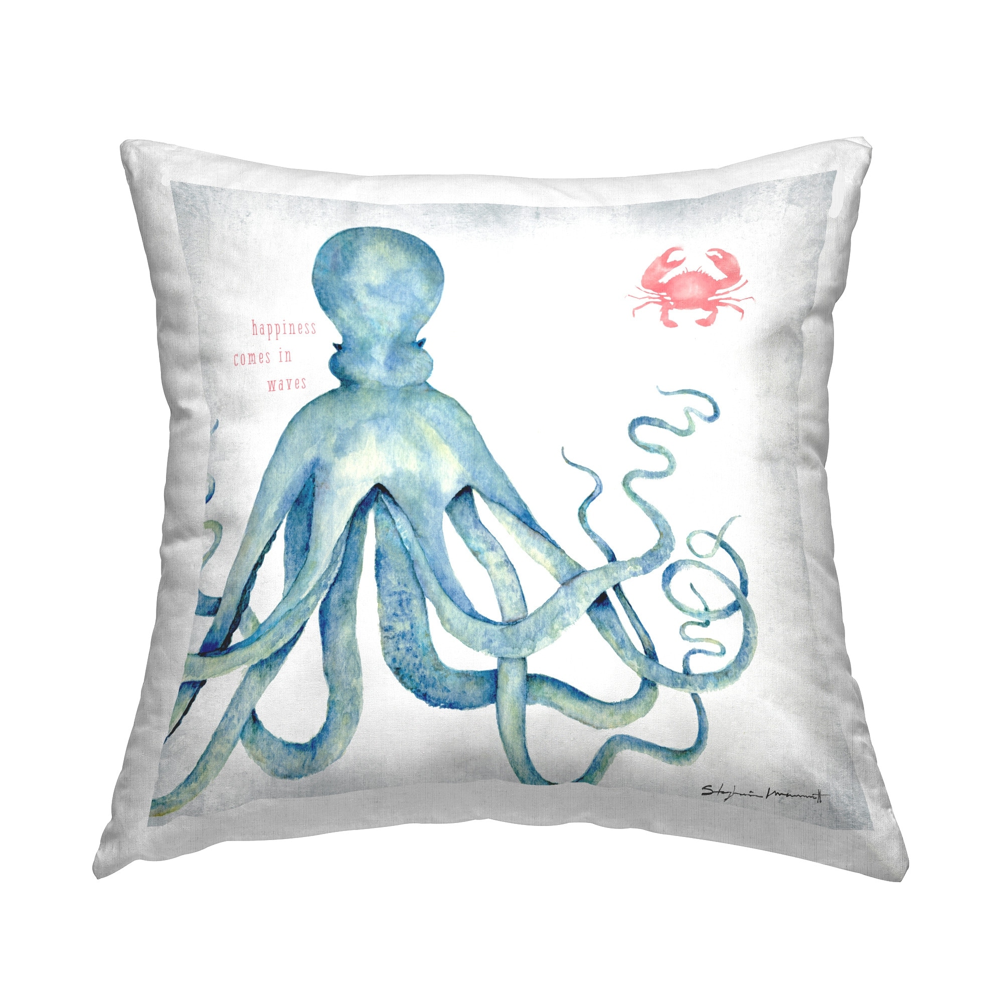 Stupell Industries Happiness Comes in Waves Marine Animals Phrase Printed Throw Pillow by Stephanie Workman Marrott