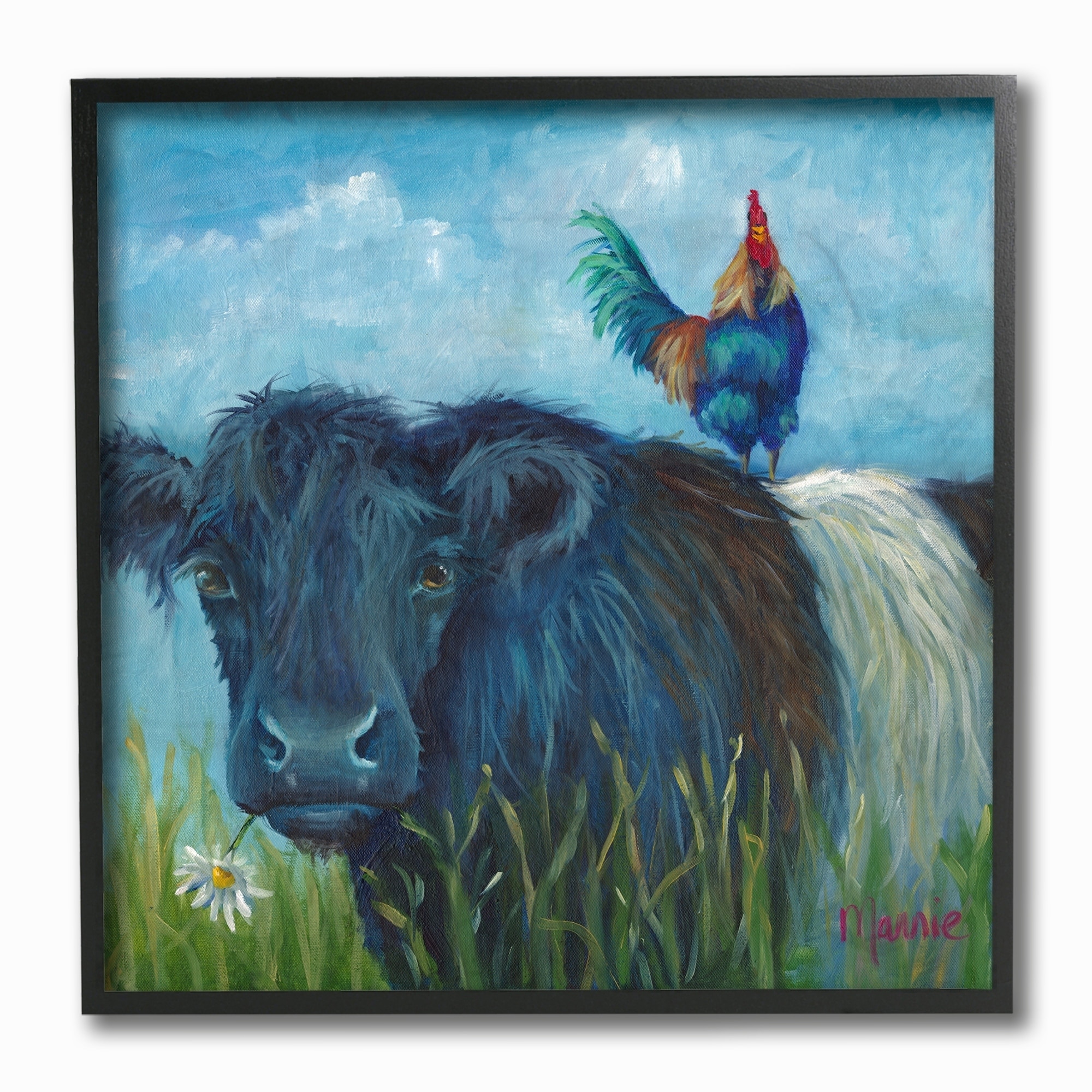 Stupell Farm Cow Painting on Blue Framed Giclee Art, 12 x 1.5 x 12, Proudly Made in USA