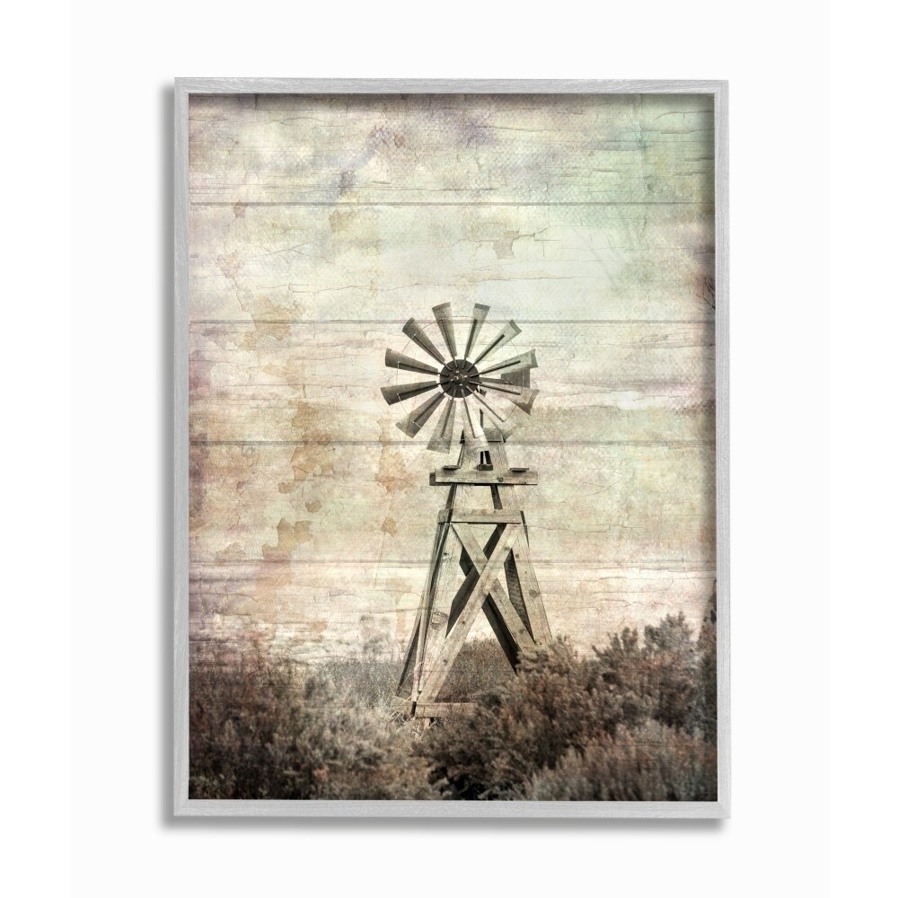 The Stupell Home Decor Distressed Silent Windmill Photography with Rustic Planked Wood Look, 11 x 14, Proudly Made in USA