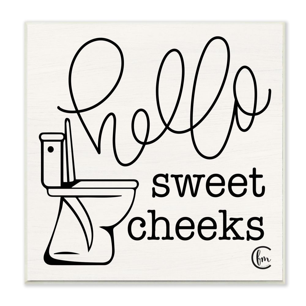 The Stupell Home Decor Toilet Hello Sweet Cheeks Black and White Wall Plaque Art, 12x12, Proudly Made in USA - 12 x 12