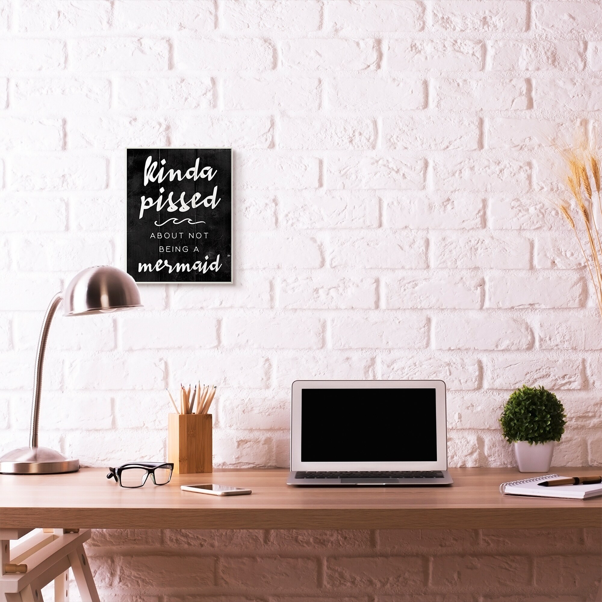 Stupell Industries Mermaid Funny Word Girls Black and White Wood Textured Design,10x15, Proudly Made in USA
